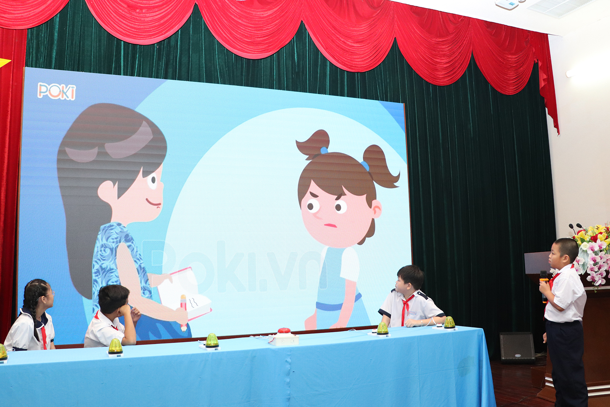 | Các em thí sinh bày tỏ ý kiến cá nhân về các vấn đề liên quan đến trẻ em tại Ngày hội |