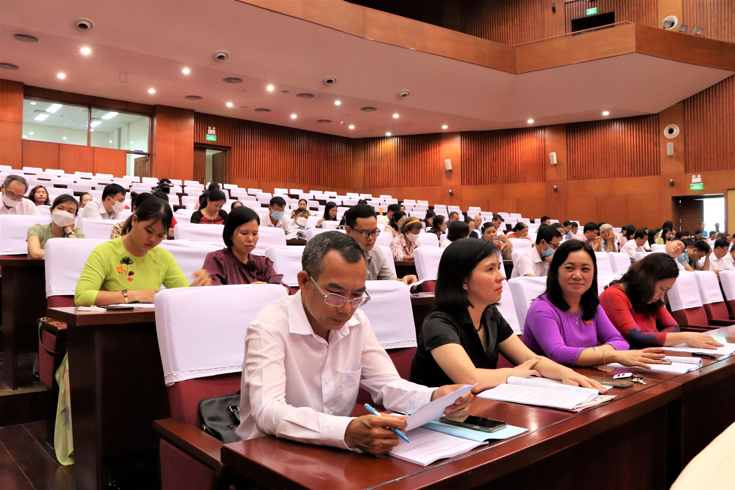 Ông Trần Văn Lợi (hàng đầu bên phải), Phó Chủ tịch Ủy ban MTTQ tỉnh và các đại biểu dự hội nghị.