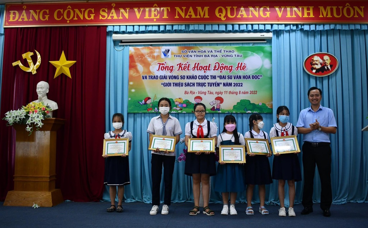 Lễ trao giải Đại sứ Văn hóa đọc năm 2022, dự kiến diễn ra ngày 1/12 tại Nhà hát Lớn Hà Nội. Bà Rịa - Vũng Tàu có 2 HS đạt giải Đại sứ Văn hóa đọc năm 2022 gồm: Nguyễn Lê An Nhiên (HS Lớp 5A1, Trường TH Nguyễn Viết Xuân, TP. Vũng Tàu) và Huỳnh Đức Thắng (HS Lớp 11A1, Trường THPT Châu Thành, TP. Bà Rịa).