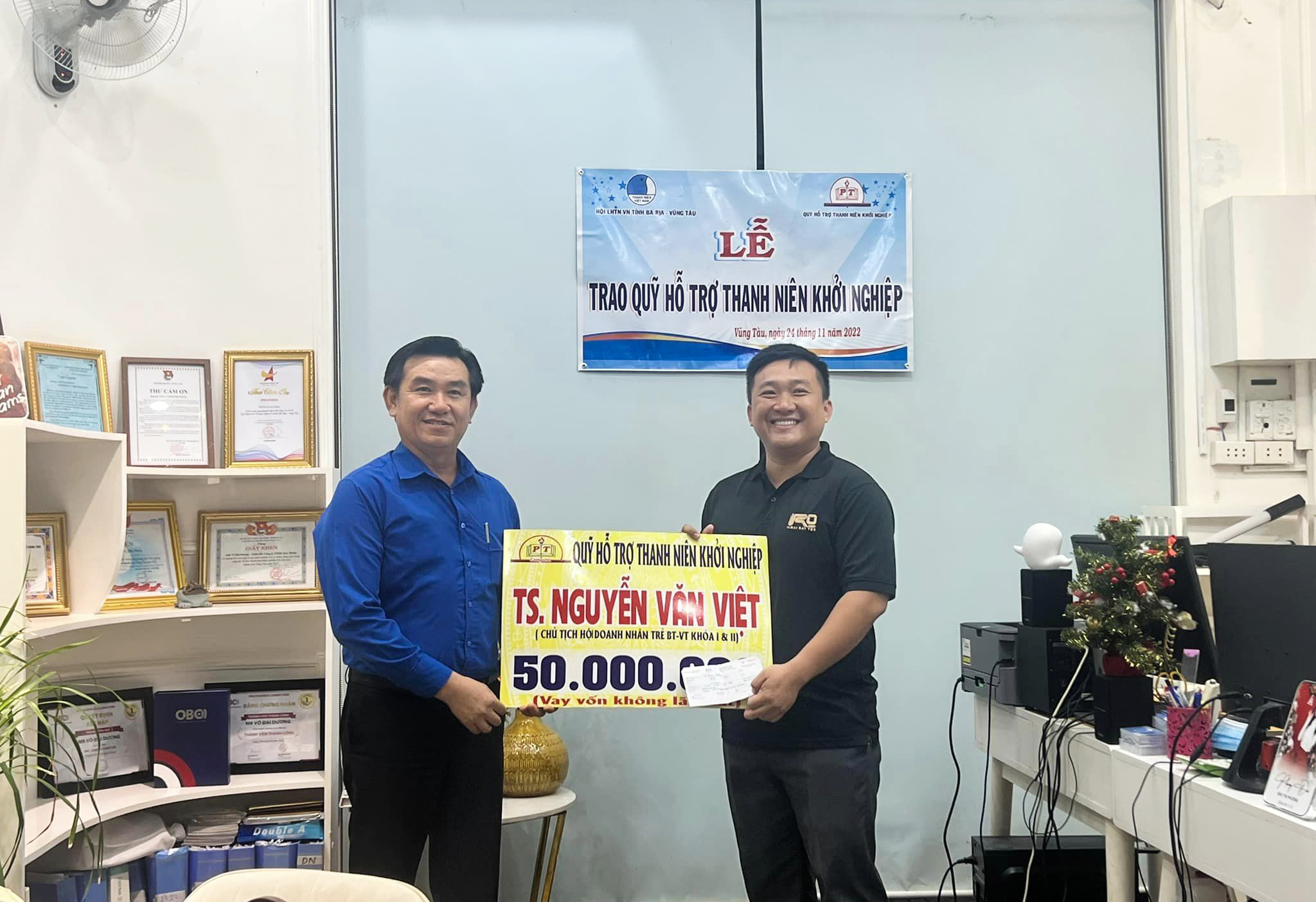 Ngày 24/11, Anh Nguyễn Văn Việt, Phó Chủ tịch Hội LHTN Việt Nam tỉnh, Trưởng Ban Quản lý Quỹ Khởi nghiệp 0% đã trao vốn vay 50 triệu đồng với lãi suất 0%, đối với dự án Danh thiếp điện tử của anh Võ Đại Dương, đại diện Công ty TNHH Ipro Media, TP.Vũng Tàu.