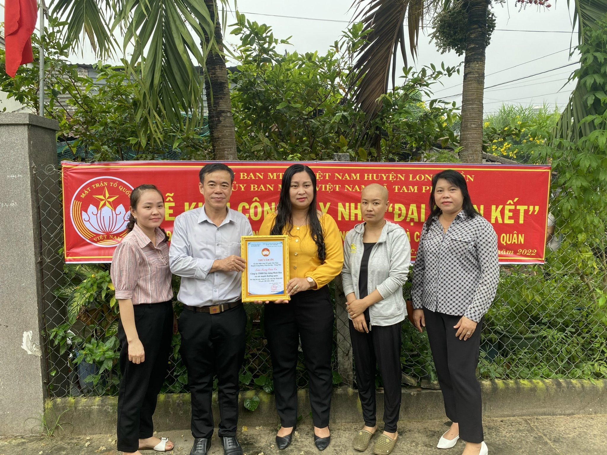 Chị Trần Thị Phương Uyên (SN 1985), có hoàn cảnh rất khó khăn, bản thân mắc bệnh hiểm nghèo, một mình nuôi con nhỏ. Cuộc sống của hai mẹ con phụ thuộc vào việc may vá, sửa chữa quần áo của chị Uyên. Kinh phí xây dựng căn nhà Đại đoàn kết là 100 triệu đồng, do Ủy ban MTTQ Việt Nam huyện Long Điền vận động Công ty TNHH Xây dựng Minh Hòa (phường Long Toàn, TP. Bà Rịa) ủng hộ.
