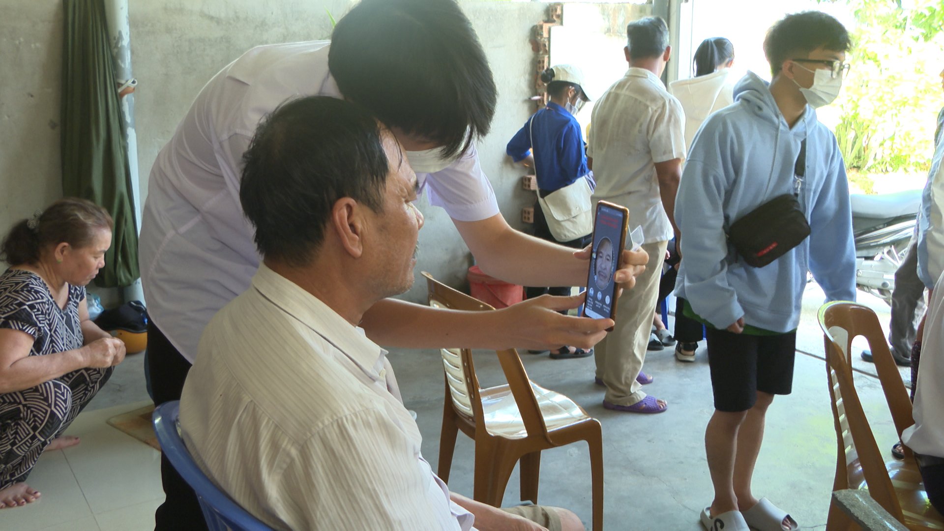 | Đoàn viên thanh niên thị trấn Long Hải hỗ trợ người dân cài đặt VNeID. |