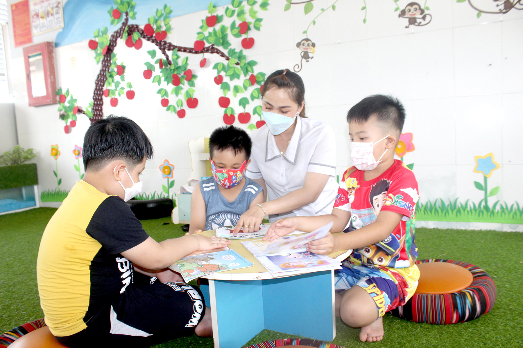 | Trường MN Hướng Dương (TP. Bà Rịa) là 1 trong 2 tập thể được Thủ tướng chính phủ tặng Bằng khen vì đã có thành tích trong công tác GD-ĐT từ năm học 2017-2018 đến năm học 2021-2022. Trong ảnh: GV Trường MN Hướng Dương cùng trẻ đọc sách tại thư viện mở của trường. Ảnh: KHÁNH CHI |