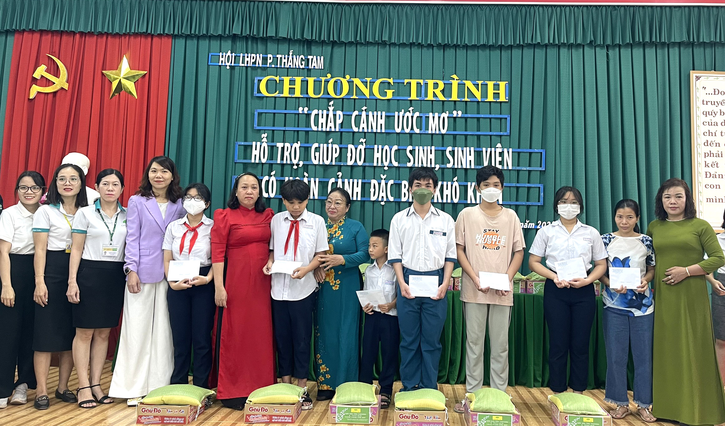 Tại chương trình, Hội LHPN phường Thắng Tam đã giới thiệu và phát động chương trình “Chắp cánh ước mơ” đến cán bộ, hội viên phụ nữ, các ban ngành, đoàn thể, tổ chức, cá nhân. Qua đó, kêu gọi cán bộ, hội viên phụ nữ, các đơn vị hỗ trợ tiền hoặc vật chất để trao học bổng, đồ dùng, thiết bị học tập… cho học sinh, sinh viên có hoàn cảnh khó khăn.
