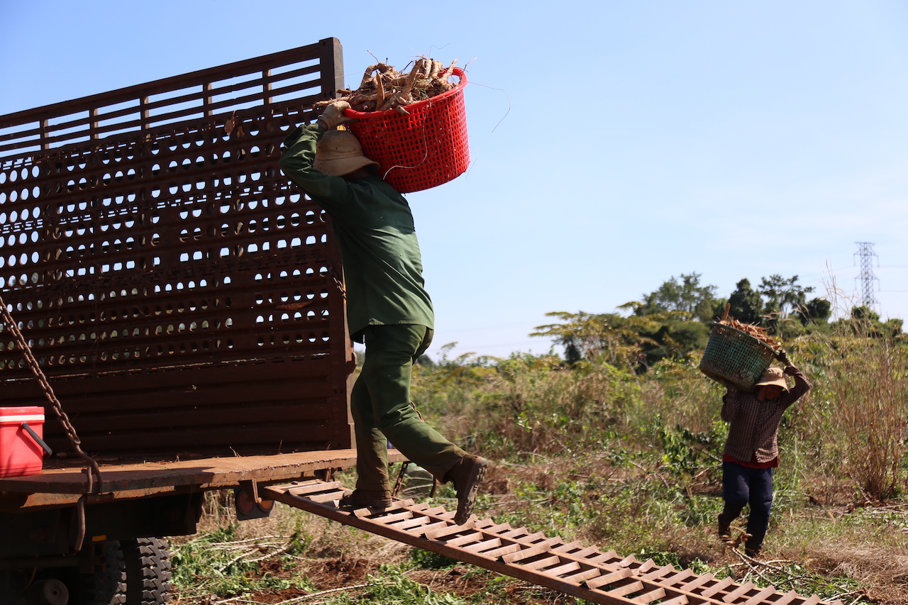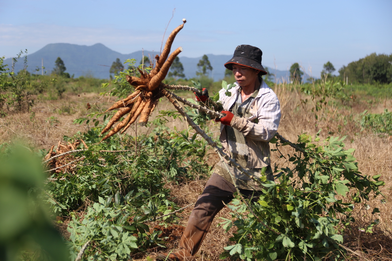 Đội nắng cháy, tất bật thu hoạch khoai mì