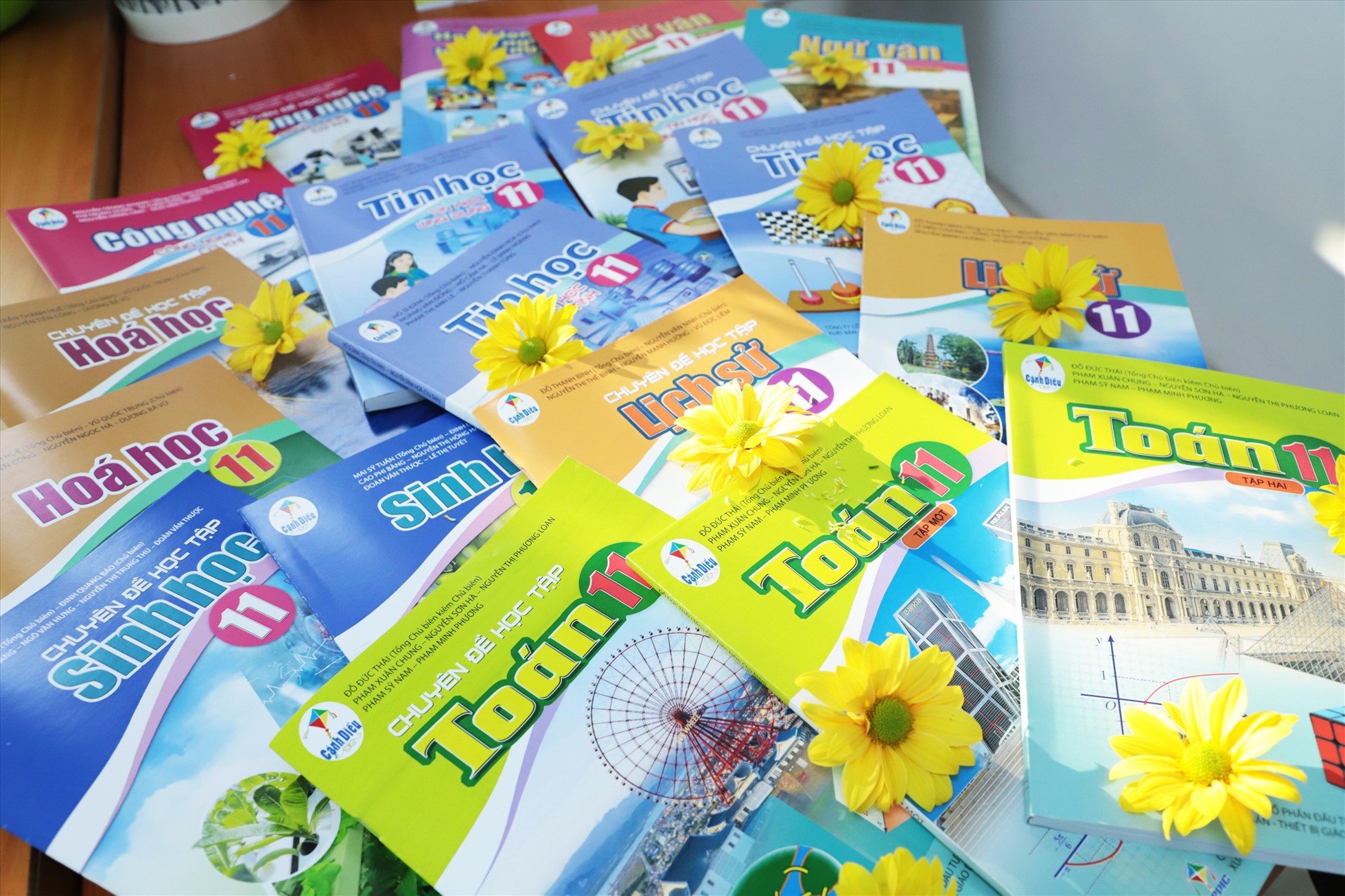 | 50 đầu sách giáo khoa được phê duyệt dạy học học sinh lớp 11. Ảnh: Bích Hà/NLĐ |