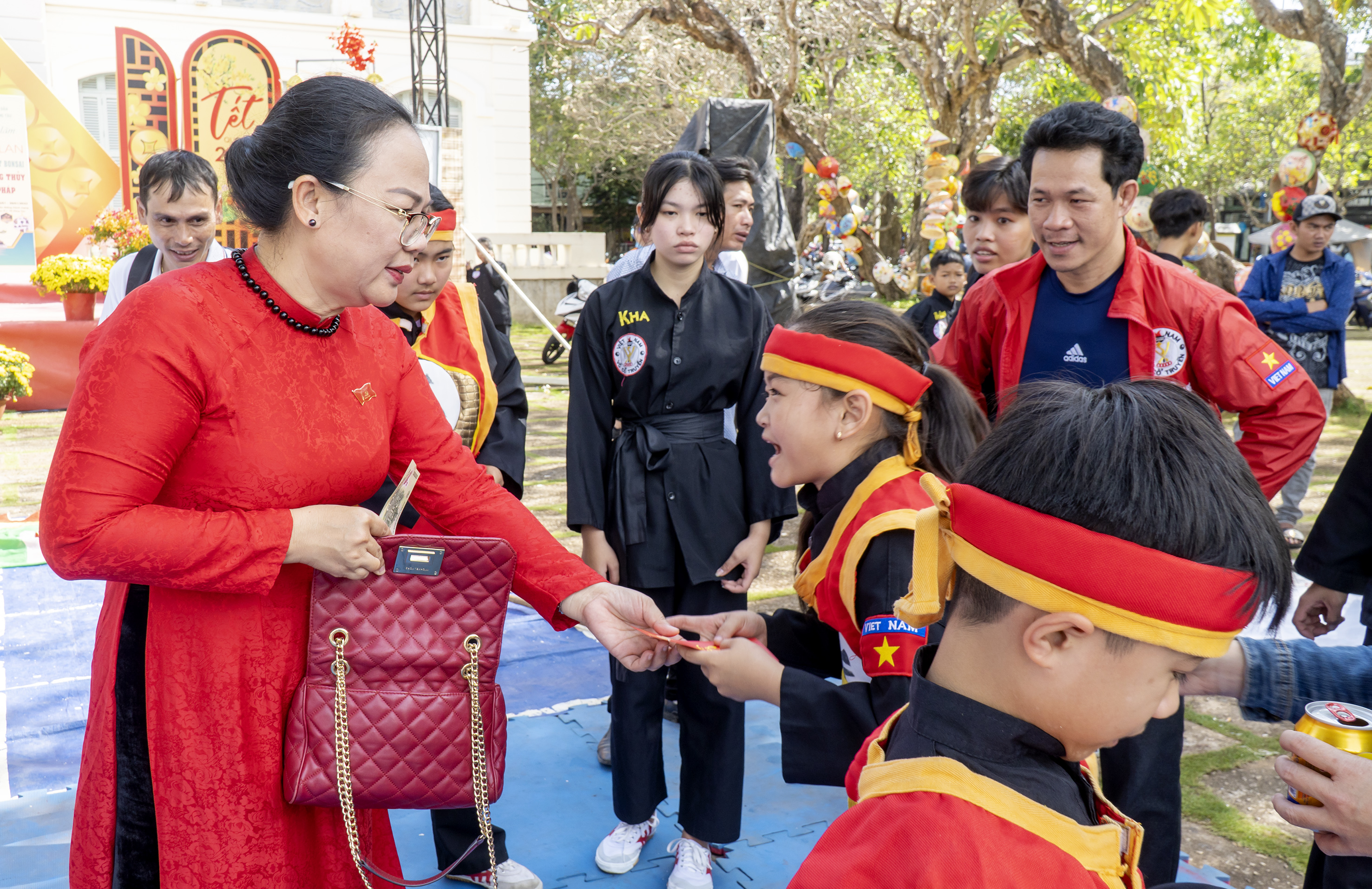 | Bà Nguyễn Thị Thu Hương, Phó Chủ tịch UBND TP. Vũng Tàu lì xì chúc mừng năm mới các võ sinh nhí. |