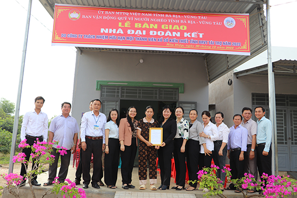 | UBMTTQ Việt Nam tỉnh vận động Công ty TNHH MTV Xổ số Kiến thiết tỉnh tặng nhà đại đoàn kết cho hộ nghèo tại huyện Xuyên Mộc trước Tết Nguyên đán Quý Mão 2023. |