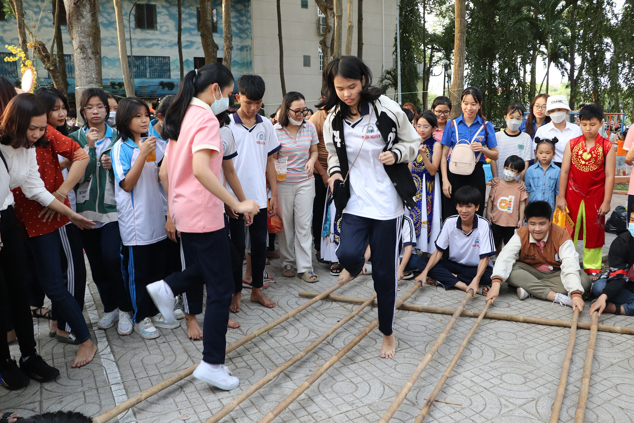| Học sinh tham gia tại gian hàng nhảy sạp. |