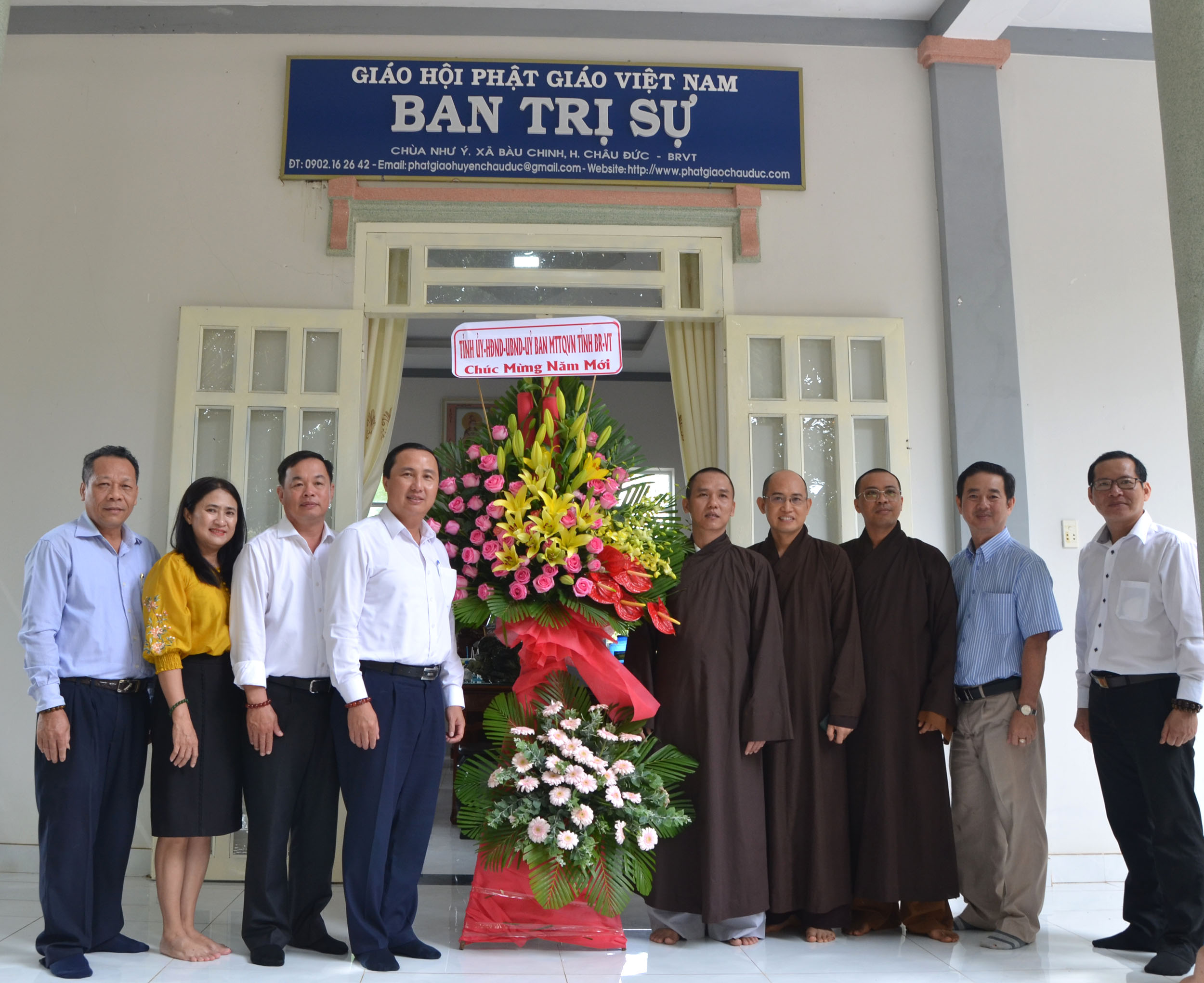 Tiếp đó, Đoàn đã đến thăm, tặng quà, chúc Tết các cơ sở tôn giáo trên địa bàn huyện Châu Đức gồm: Ban Trị sự Giáo hội Phật giáo Việt Nam huyện Châu Đức (chùa Như Ý, xã Bàu Chinh), Ban Đại diện Hội thánh Cao đài Truyền giáo tỉnh (Tịnh thất Thanh Châu, xã Nghĩa Thành).