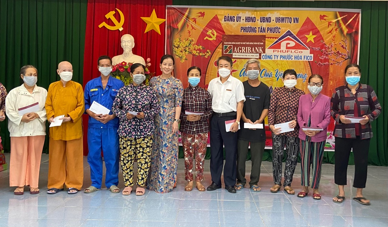 Mỗi suất quà trị giá 500 ngàn đồng. Trong đó, 20 suất quà là tiền mặt, do Ngân hàng Nông nghiệp và phát triển nông thôn Agribank, Chi nhánh Phú Mỹ tài trợ; 50 suất quà Tết (gồm bánh, sữa, nước ngọt và nhu yếu phẩm) do Công ty CP Phước Hoà Fico trao tặng.