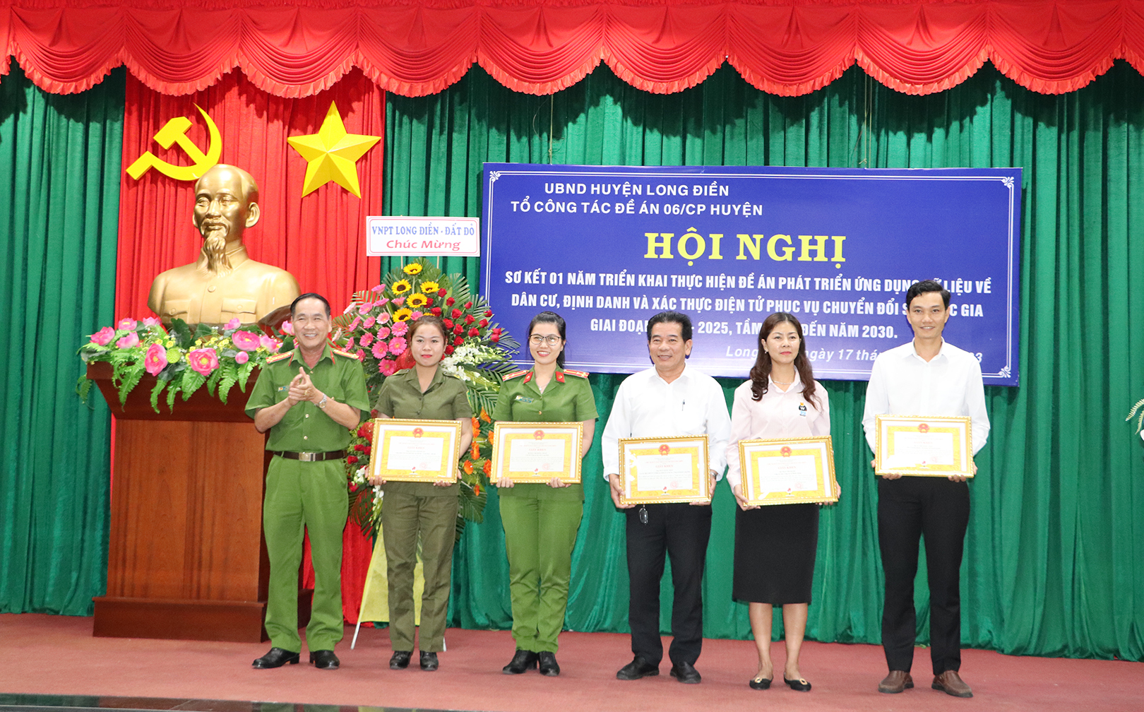 Dịp này, UBND huyện Long Điền tặng Giấy khen tới 3 tập thể, 6 cá nhân có thành tích xuất sắc trong thực hiện Đề án 06 năm 2022.