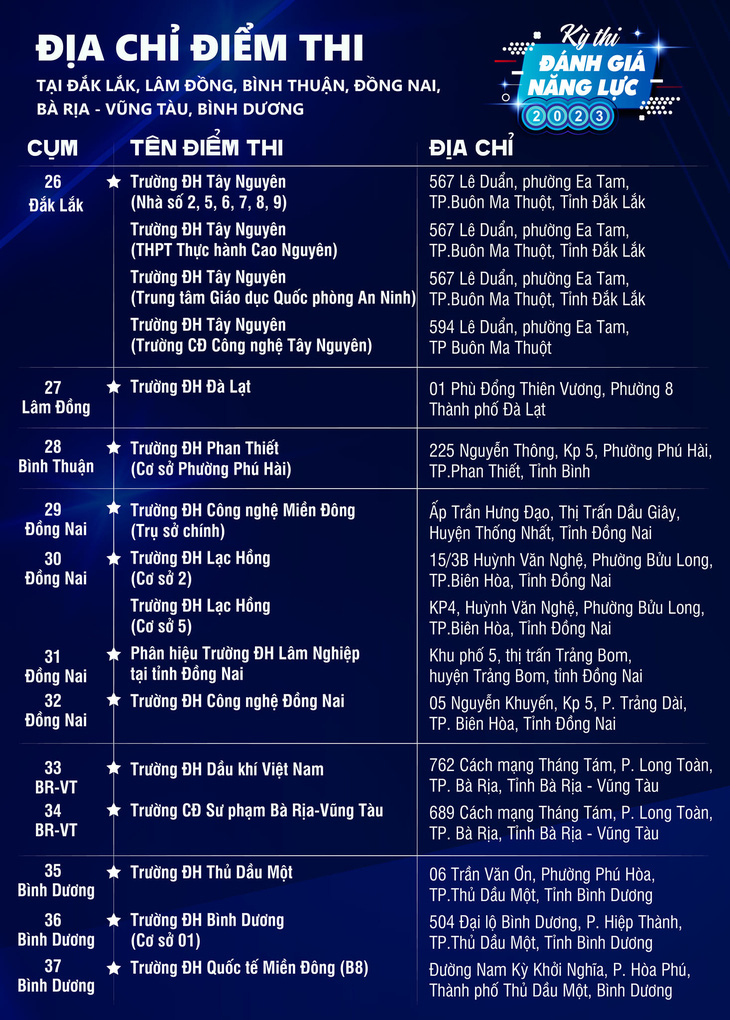 | Bản đồ phân bố 47 cụm thi đánh giá năng lực đợt 1 năm 2023 |