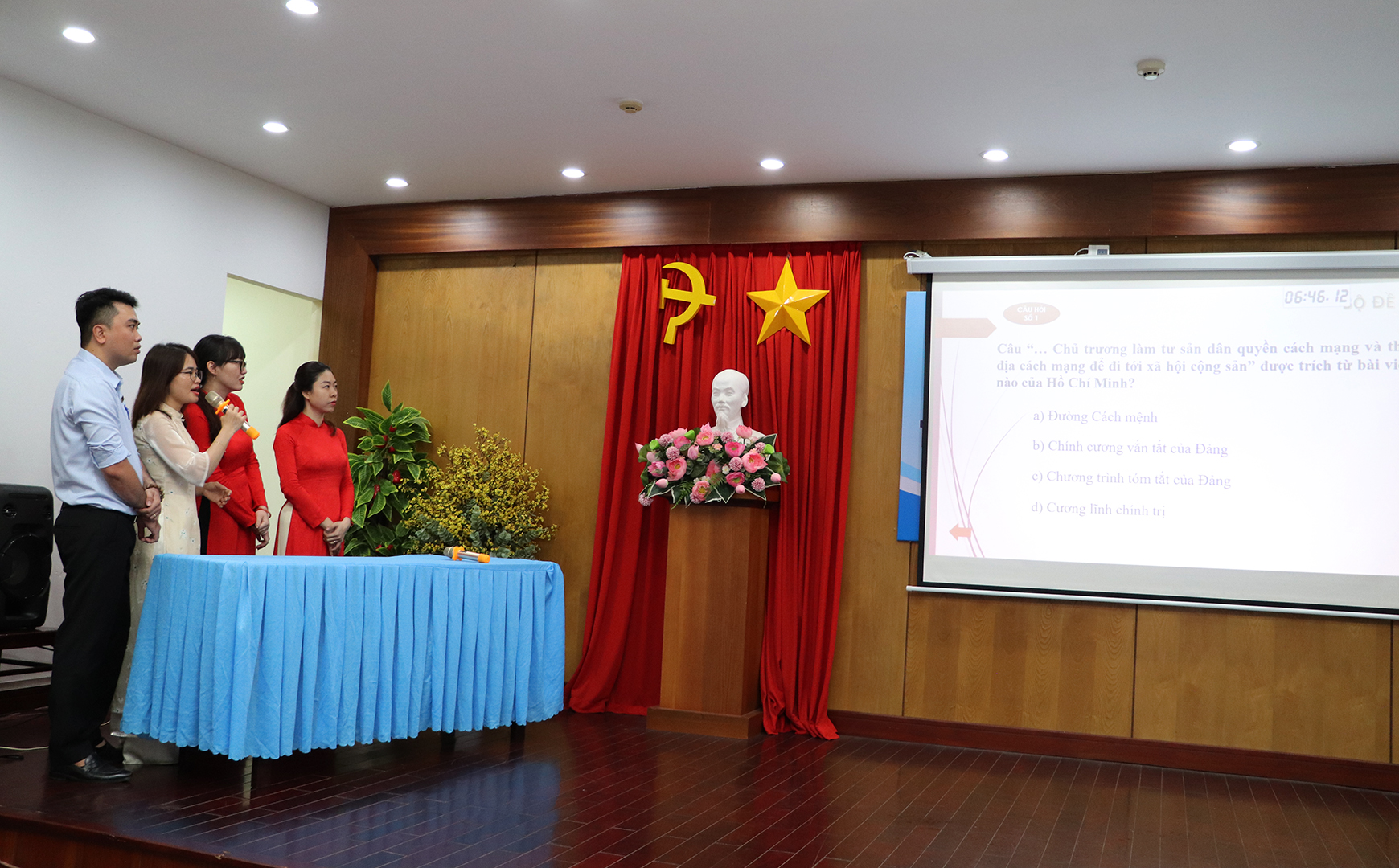 Ở phần thi trắc nghiệm, mỗi đội chọn ngẫu nhiên 1 bộ đề thi và có thời gian 7 phút để trả lời 15 câu hỏi gồm những kiến thức cơ bản về Đảng Cộng sản Việt Nam, tư tưởng Hồ Chí Minh, lịch sử truyền thống và hoạt động của Công ty từ khi thành lập cho đến nay.