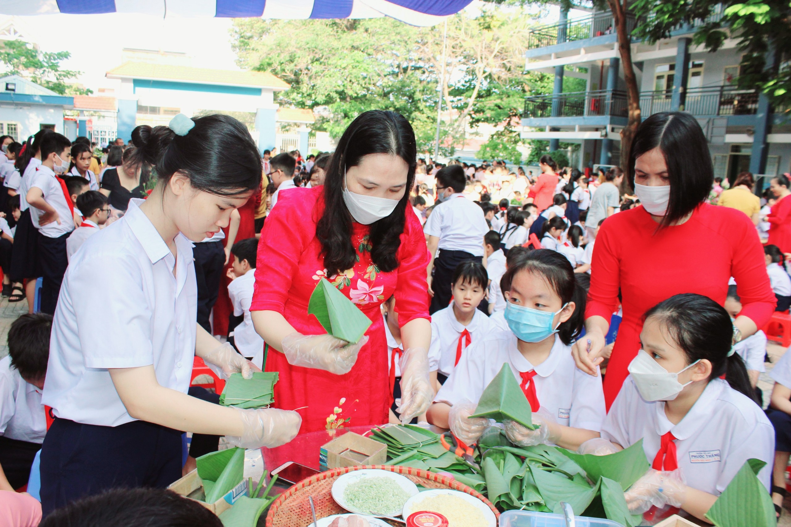 Nhân dịp Giỗ Tổ Hùng Vương năm 2023, sáng 24/4, Trường TH Phước Thắng (TP.Vũng Tàu) tổ chức “Lễ hội làm bánh dân gian” với sự tham gia của gần 2.000 HS, phụ huynh, cán bộ, GV, nhân viên toàn trường.