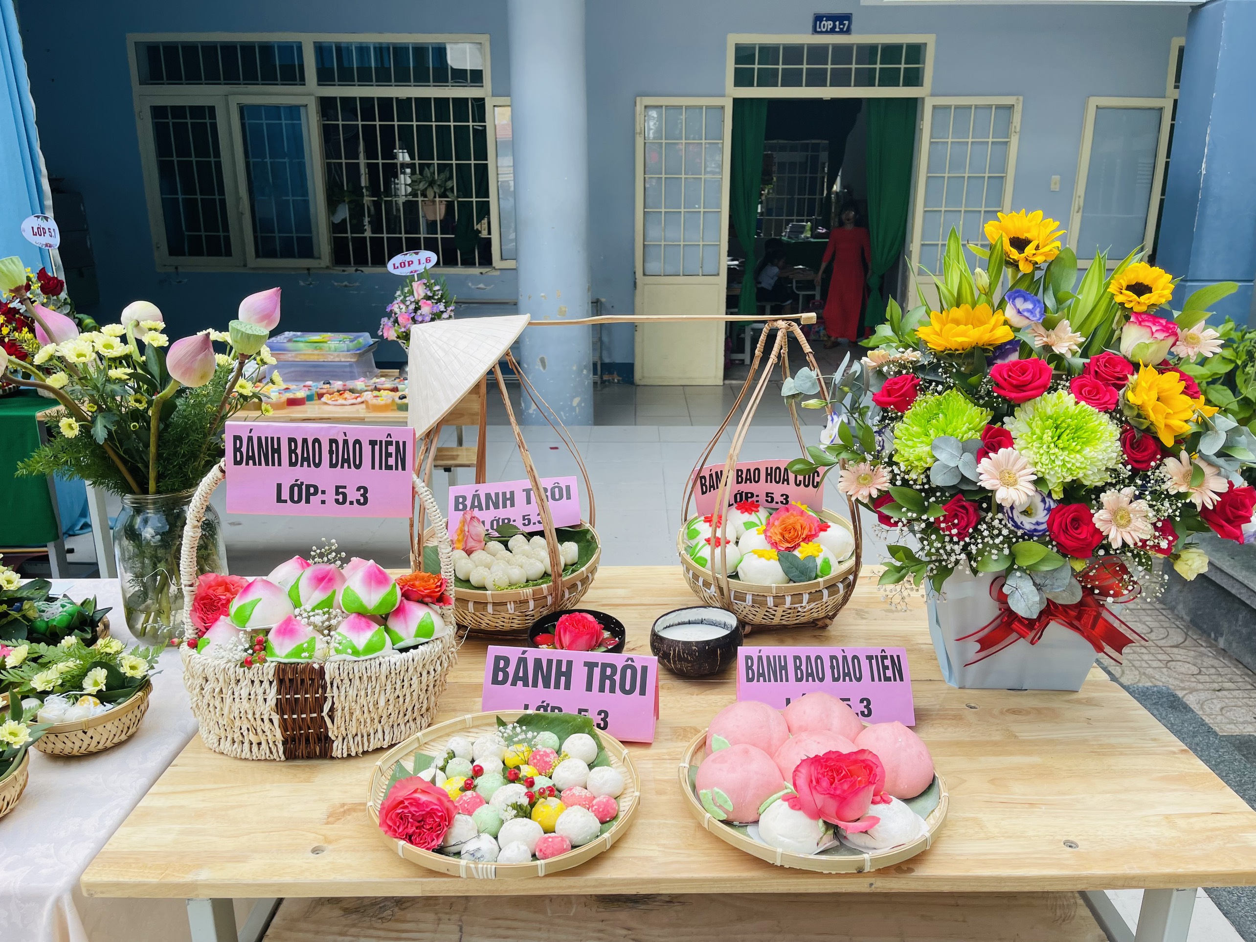 Tham gia chương trình, các em HS được ôn lại sự tích “Bánh chưng bánh giầy” thông qua các tiết mục văn nghệ đặc sắc. Bên cạnh đó, GV và phụ huynh các lớp tự chuẩn bị nguyên vật liệu bột, gạo, nếp, thịt… để hướng dẫn HS làm các loại bánh dân gian như bánh chưng, bánh giầy, bánh trôi, bánh chay, bánh tét, bánh răng bừa… Sau khi hoàn thành sản phẩm, mỗi lớp sẽ trưng bày trên mâm hoặc khay các loại bánh vừa gói và bánh đã nấu chín để Ban tổ chức chấm điểm.