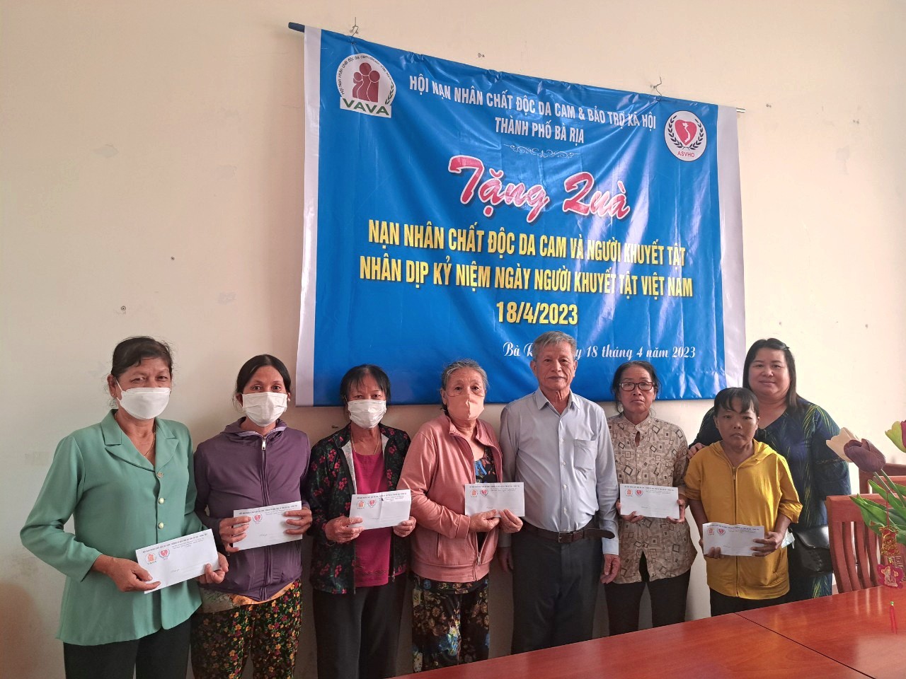 | Nhân dịp ngày NKT Việt Nam năm 2023, ngày 11/4 vừa qua, Hội NNCĐDC/Dioxin và BTXH tỉnh đã trao 300 triệu đồng cho các Bệnh viện (BV) Vũng Tàu, Bà Rịa, Y học cổ truyền để hỗ trợ tiền ăn cho bệnh nhân da cam, NKT; trao 3 triệu đồng/người cho 370 NKT và trao 2 triệu đồng/người cho 176 em HS khó khăn bị khuyết tật. |