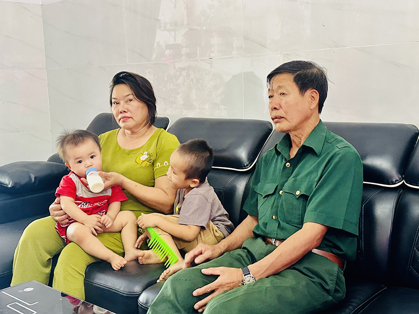 | Ông Vũ Đức Bồi cùng vợ Phạm Thị Sen vừa trông cửa hàng dịch vụ áo cưới vừa chăm sóc các cháu trong ngôi nhà khang trang ở khu TĐC Hắc Dịch (TX. Phú Mỹ). |