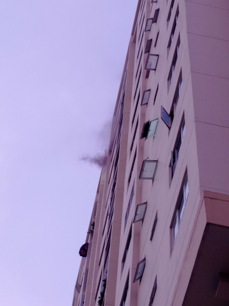 | Khói đen bốc ra từ một căn hộ ở tầng 19. |