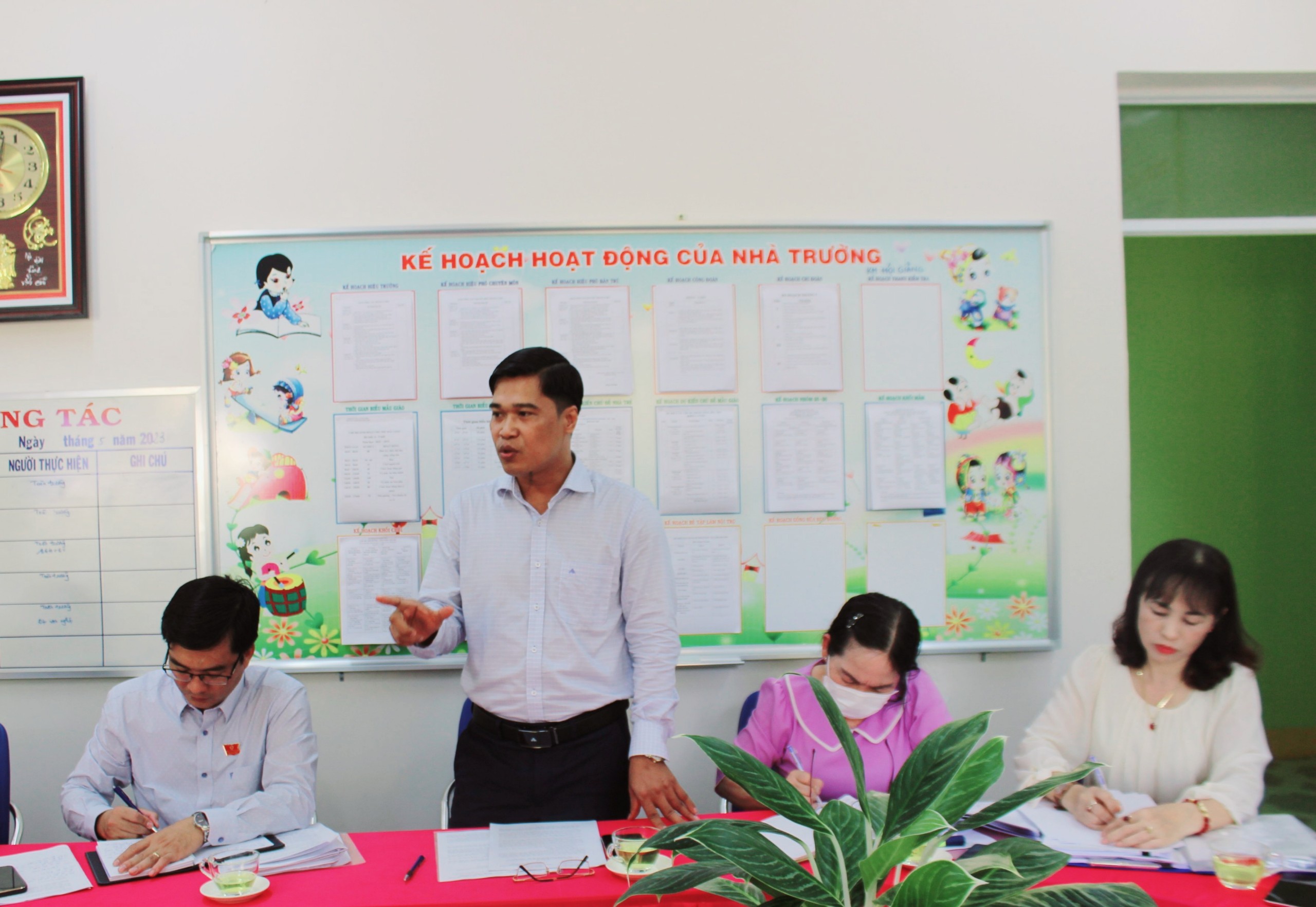 | Ông Bùi Chí Tình, Phó trưởng Ban Văn hóa-Xã hội HĐND tỉnh, Phó Giám đốc Sở Y tế phát biểu tại buổi làm việc với Trường MN Hoa Sen. |