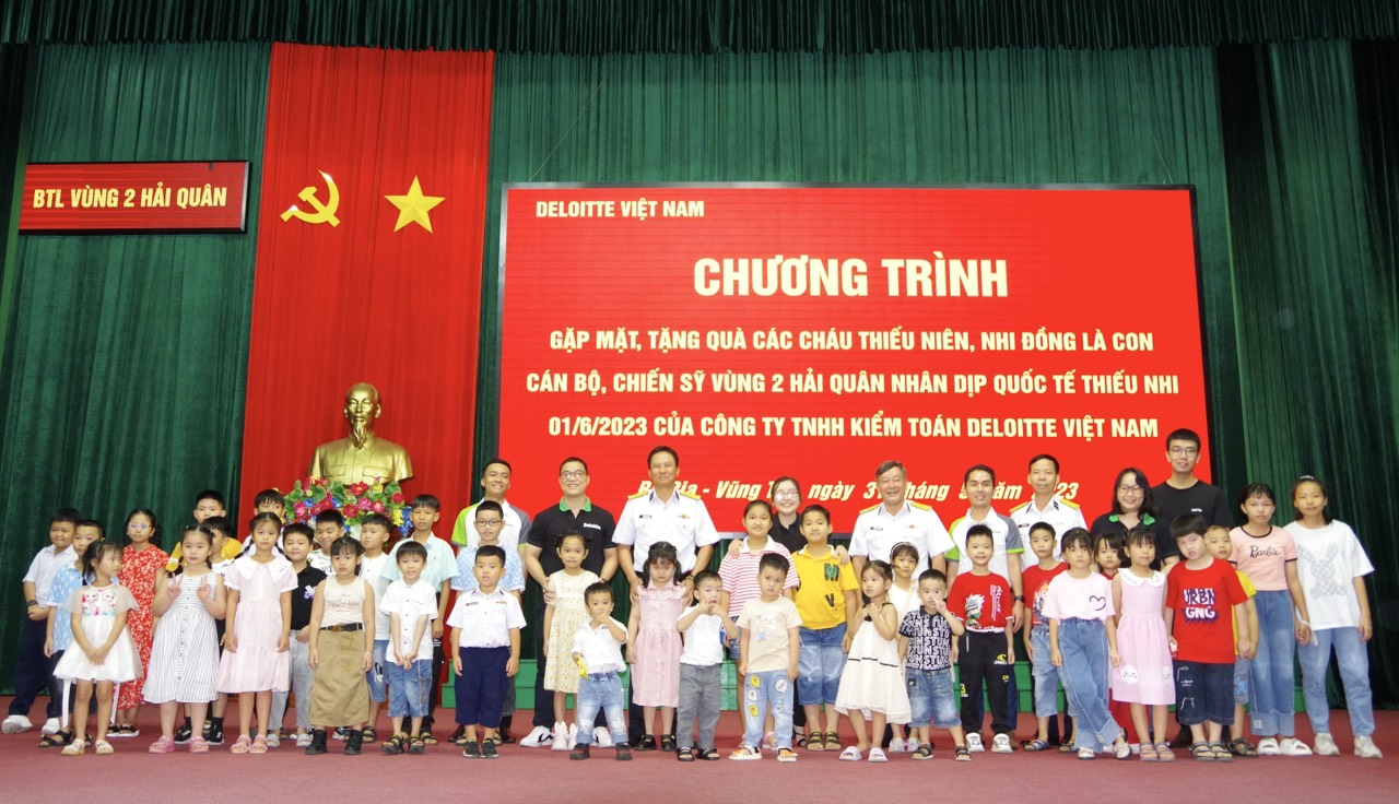 Nhân ngày Quốc tế thiếu nhi 1/6, ngày 31/5, Bộ Tư lệnh Vùng 2 Hải quân phối hợp Công ty TNHH Kiểm toán Deloitte Việt Nam tổ chức gặp mặt thiếu nhi là con của cán bộ, chiến sĩ đang công tác tại Vùng 2 Hải quân.