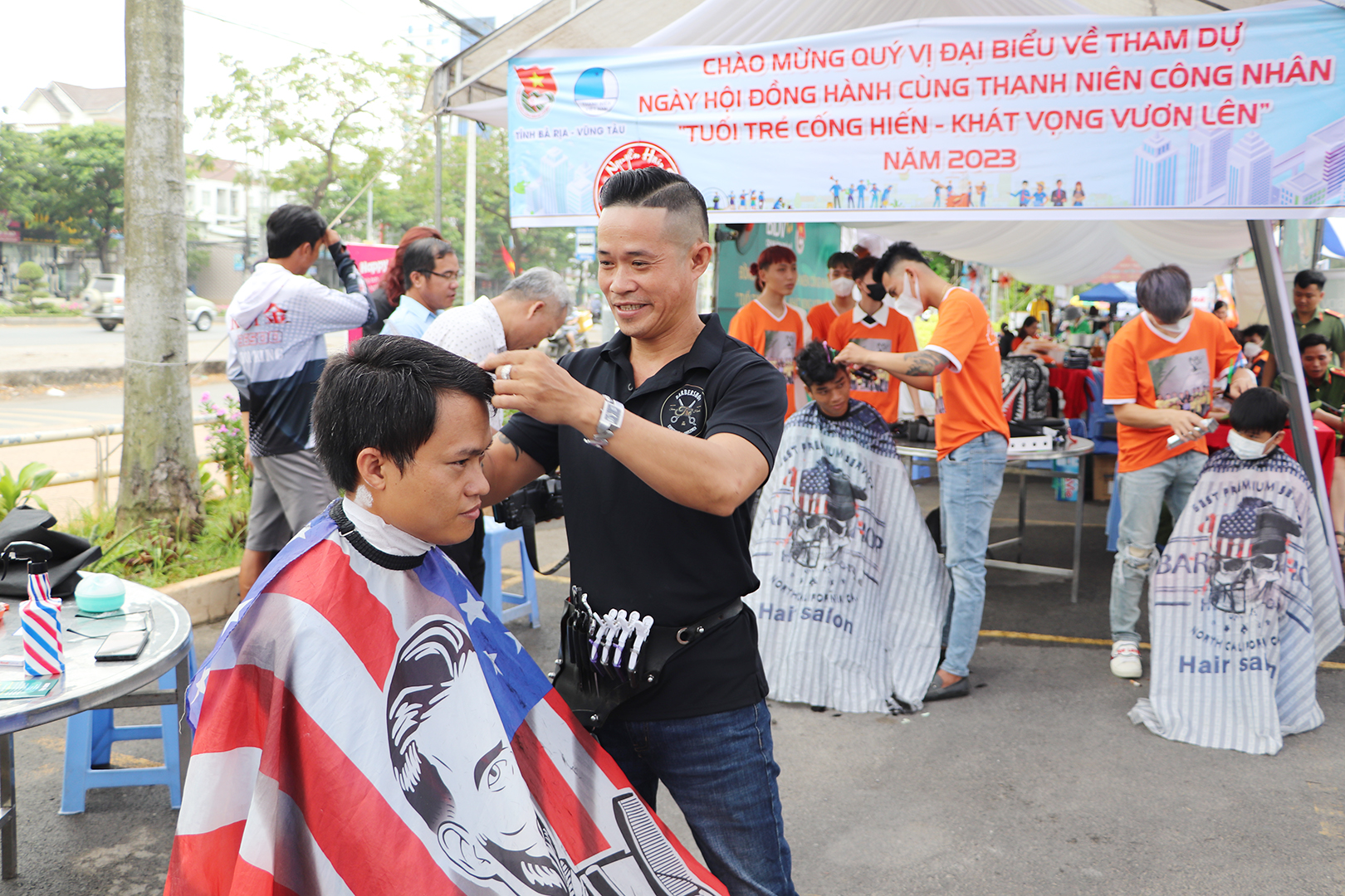 | Công nhân được cắt tóc miễn phí trong khuôn khổ chương trình. |