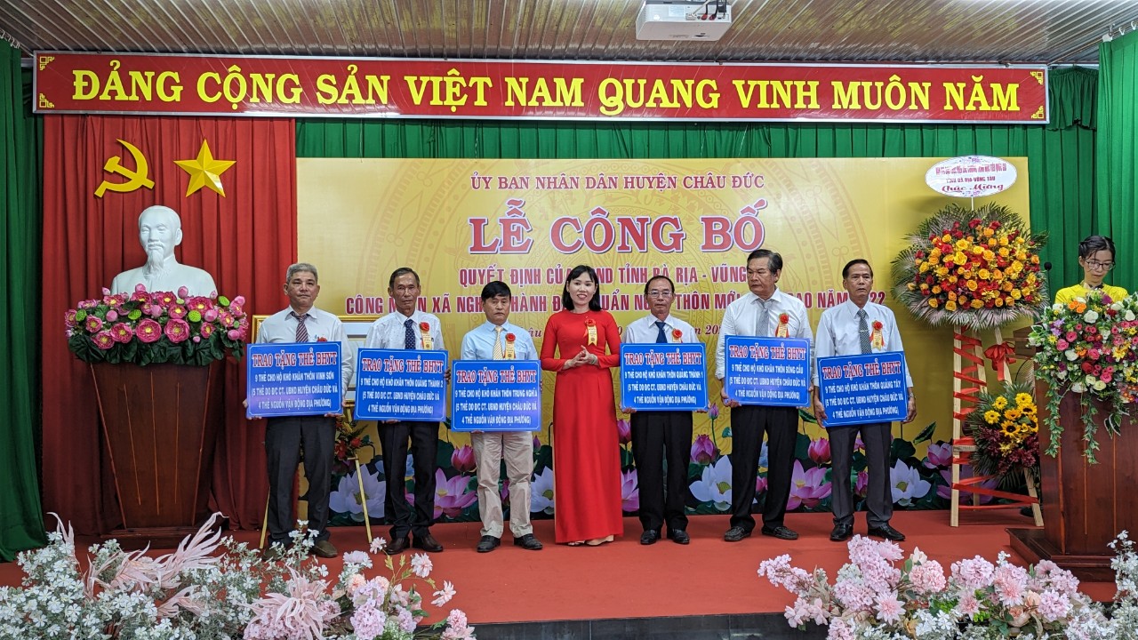 Chiều 10/5, UBND huyện Châu Đức đã tổ chức lễ công bố xã Nghĩa Thành đạt chuẩn nông thôn mới (NTM) nâng cao năm 2022. Đến nay, trên địa bàn huyện Châu Đức đã có 7 xã được công nhận đạt chuẩn NTM nâng cao.