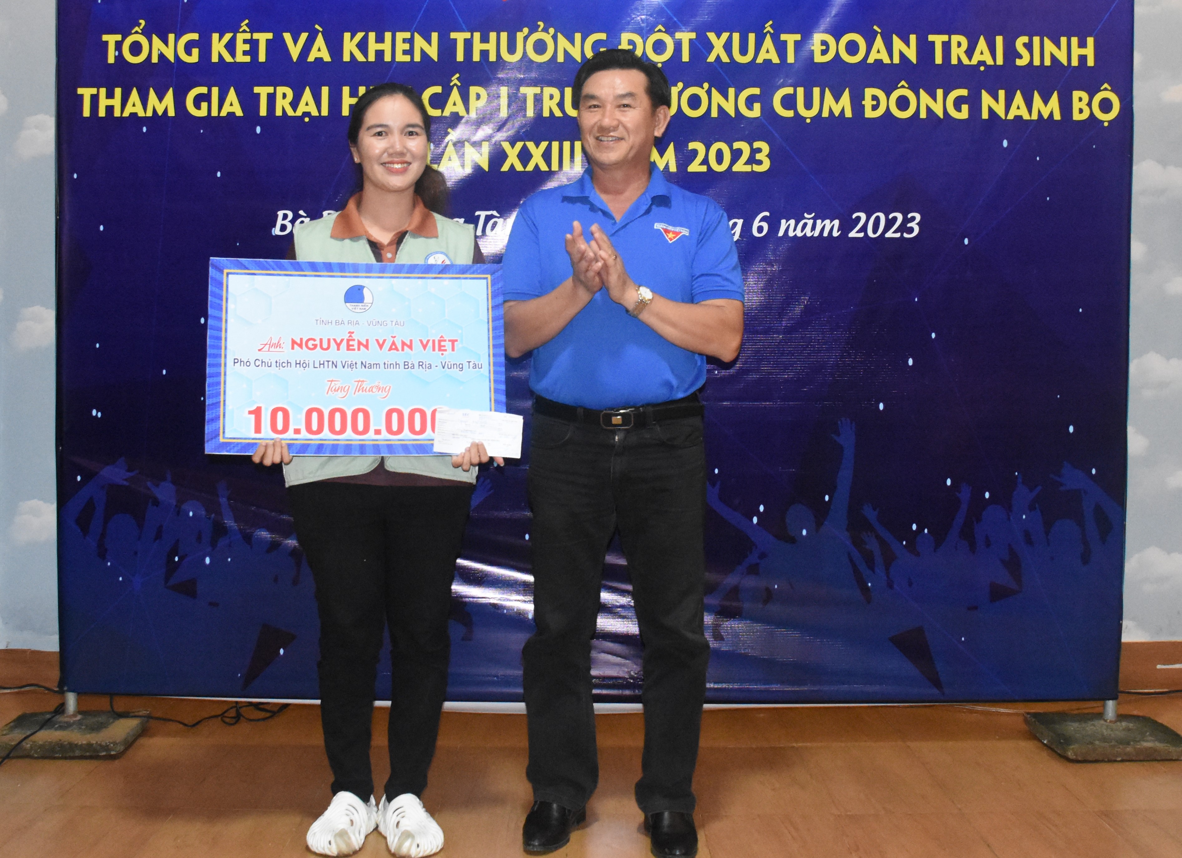 Dịp này, Hội LHTN Việt Nam tỉnh tặng Bằng khen cho Ban Huấn luyện và các trại sinh đã đạt thành tích xuất sắc, vượt qua thử thách trong quá trình tập huấn, huấn luyện và tham gia trại; anh Nguyễn Văn Việt, Phó Chủ tịch Hội LHTN Việt Nam tỉnh thưởng nóng cho Ban Huấn luyện và Đoàn trại sinh 10 triệu đồng. Trong không khí phấn khởi của chương trình, đoàn trại sinh trở về từ hội trại Nguyễn Chí Thanh cũng tặng đại biểu, Ban Huấn luyện những món quà handmade thay cho lời cảm ơn.
