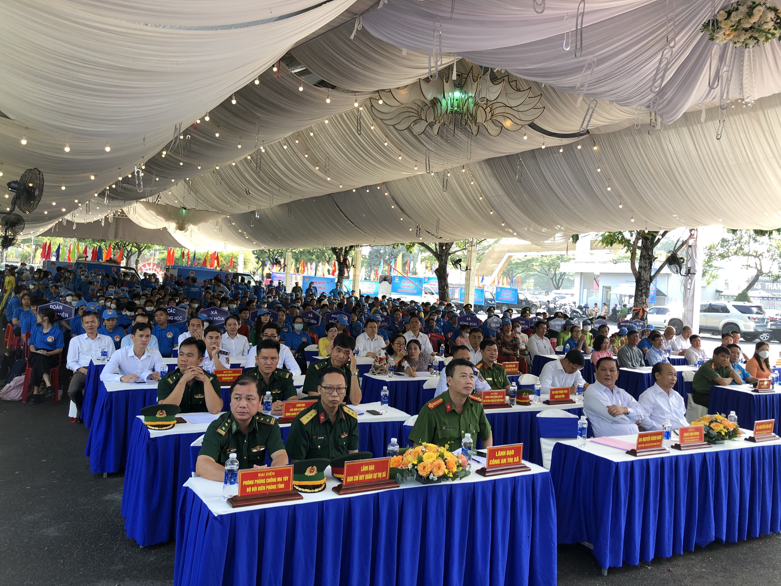 Tham dự buổi mít tinh có ông Tạ Minh Phong, Phó Giám đốc Sở Lao động - Thương binh và Xã hội, Phó trưởng Ban Chỉ đạo 138 tỉnh; Đại tá Nguyễn Văn Thời, Phó Giám đốc Công an tỉnh cùng lãnh đạo Sở Y tế, Bộ đội biên phòng và lãnh đạo UBND thị xã Phú Mỹ.