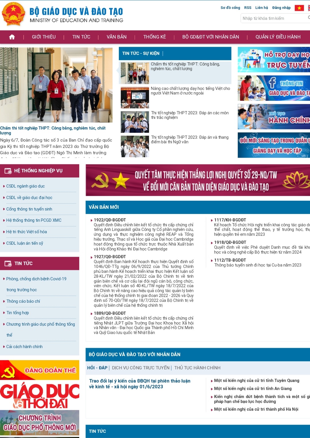 | Cổng thông tin điện tử Bộ GD-ĐT tại địa chỉ https://moet.gov.vn/Pages/home.aspx |