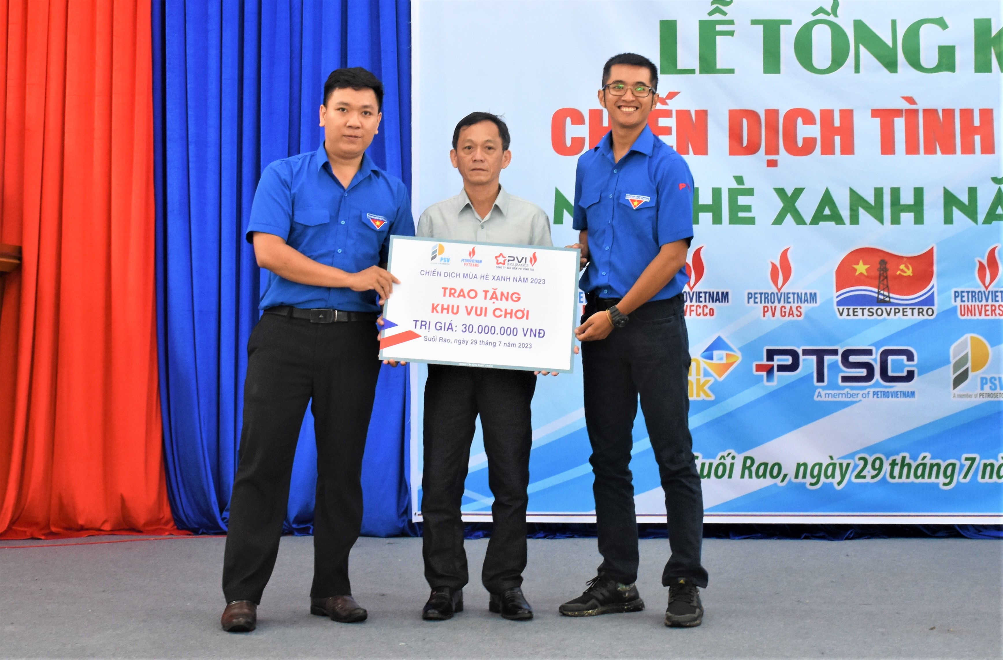Tại buổi lễ tổng kết, Cụm phối hợp hoạt động Bà Rịa-Vũng Tàu thuộc Đoàn Thanh niên Tập đoàn Dầu khí Quốc gia Việt Nam trao bảng tượng trưng tặng khu vui chơi thiếu nhi cho Trường TH Trần Phú; Đoàn thanh niên Tổng Công ty Khí Việt Nam trao bảng tưởng trưng tặng 15 xe đạp cho HS của Trường TH Trần Phú và Trường THCS Nguyễn Trung Trực; tặng 20 suất học bổng, mỗi suất 1 triệu đồng/suất cho HS có hoàn cảnh khó khăn tại địa phương.
