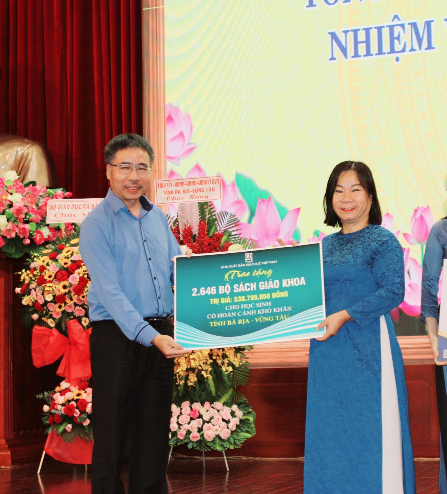Ông Trần Văn Hưng, Phó Giám đốc NXB Giáo dục Việt Nam tại TP.Hồ Chí Minh, đơn vị đã nhiều năm chung tay cùng ngành giáo dục trong việc trao tặng sách cho HS có hoàn cảnh khó khăn cho hay, năm học 2023-2024, NXB Giáo dục Việt Nam tiếp tục triển khai chương trình Cùng tiếp bước em tới trường và chương trình Tặng tủ SGK dùng chung ở tất cả các tỉnh, thành trên cả nước, trong đó có tỉnh Bà Rịa-Vũng Tàu.