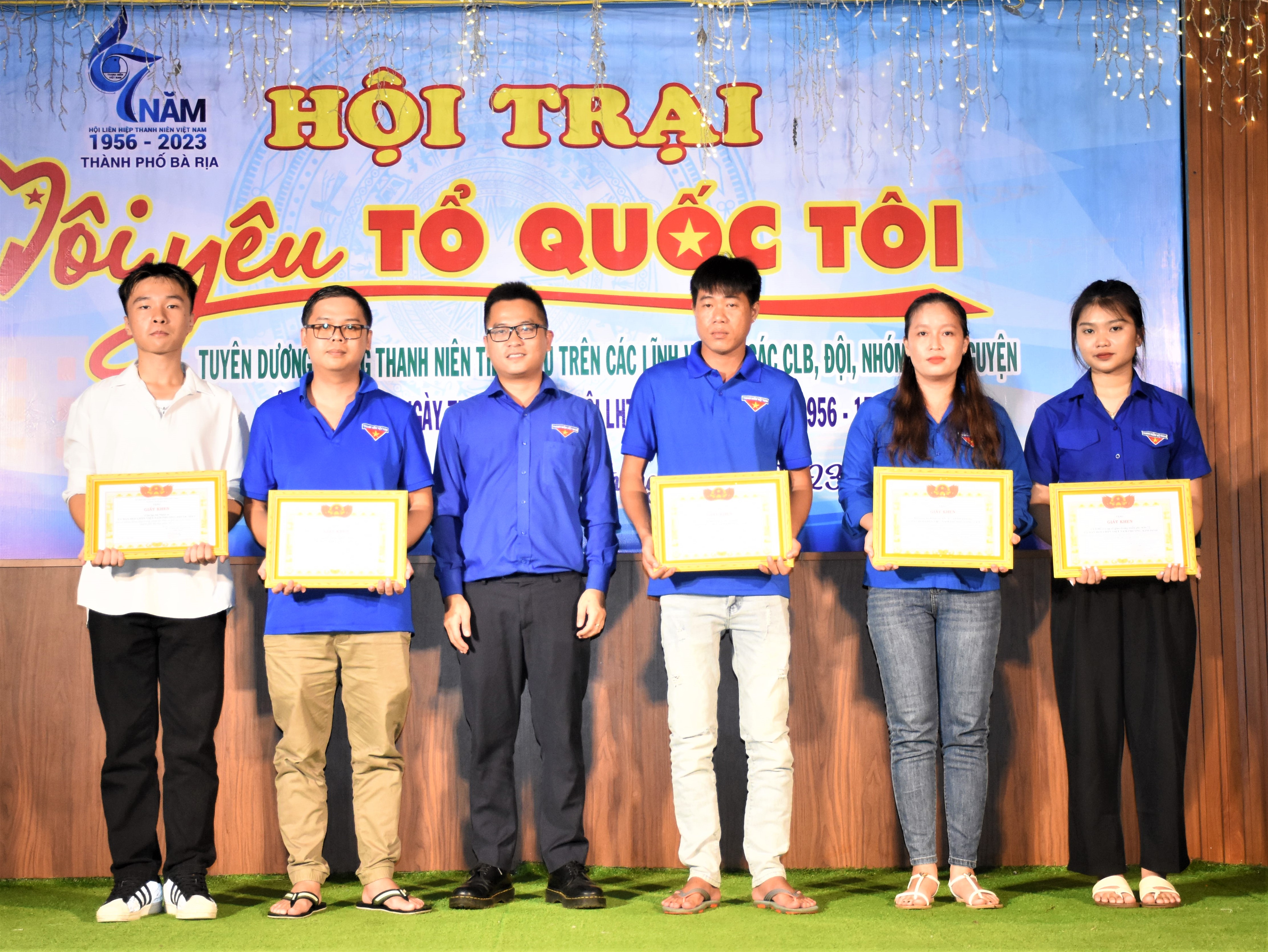 Dịp này, Thành Đoàn-Hội LHTN Việt Nam TP.Bà Rịa tặng Giấy khen tuyên dương 5 CLB, đội, nhóm tình nguyện tiêu biểu; 2 gương “Thanh niên khởi nghiệp”; 6 gương “Thanh niên tài năng trẻ” và 1 gương “Thanh niên khuyết tật tiêu biểu”; tuyên dương tiểu trại Đoàn kết xuất sắc trong liên hoan “Acoustc và mashup các bài hát về thanh niên”.