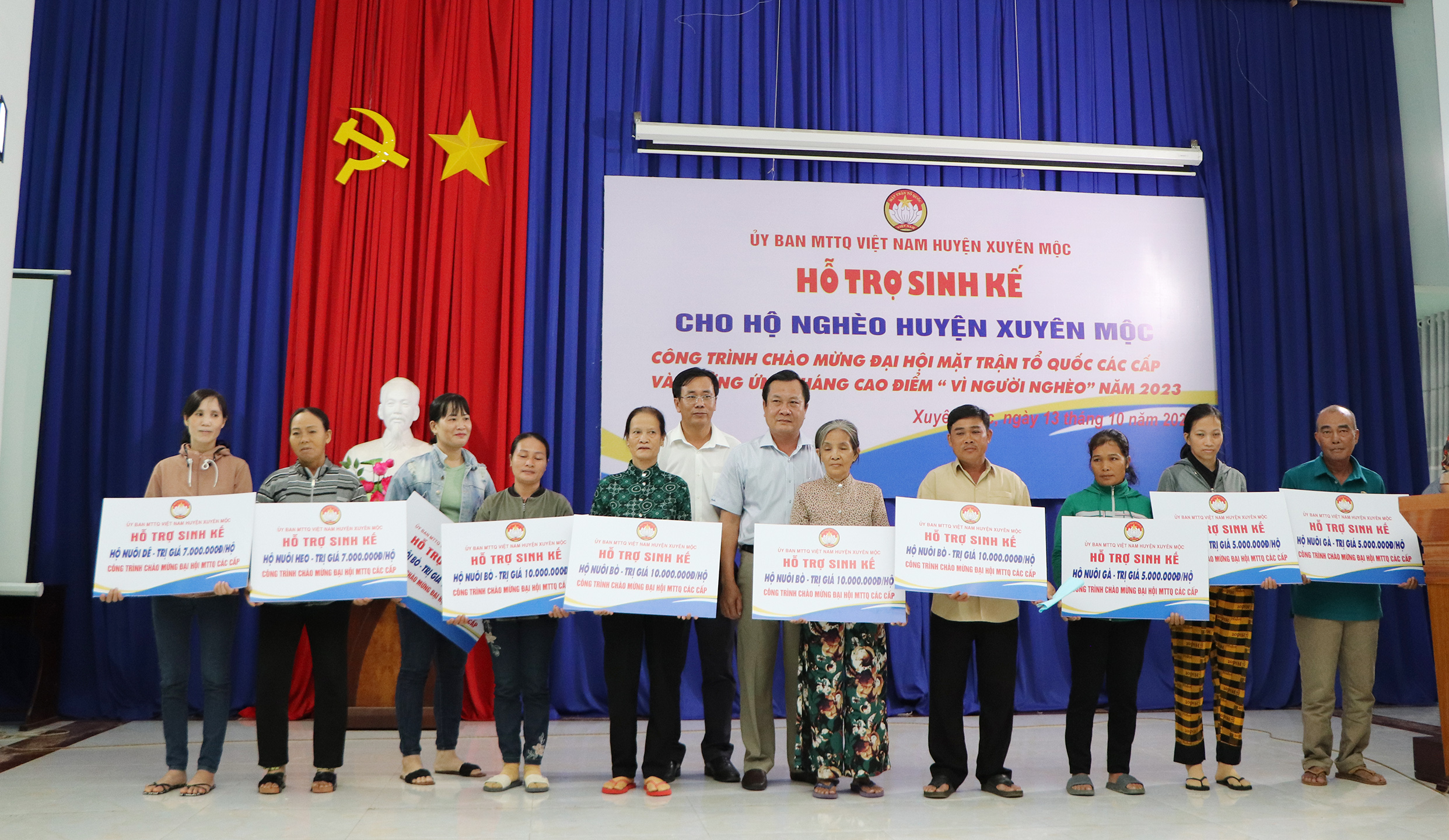 Ngày 13/10, UBMTTQ Việt Nam huyện Xuyên Mộc tổ chức chương trình trao sinh kế cho 32 hộ nghèo trên địa bàn huyện.