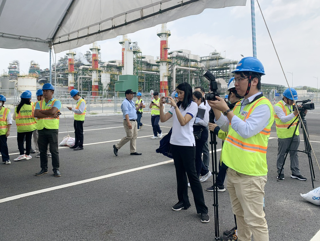 | Phóng viên Quang Vinh (Báo Bà Rịa-Vũng Tàu) tác nghiệp tại hiện trường dự án Tổ hợp hóa dầu Miền Nam. |