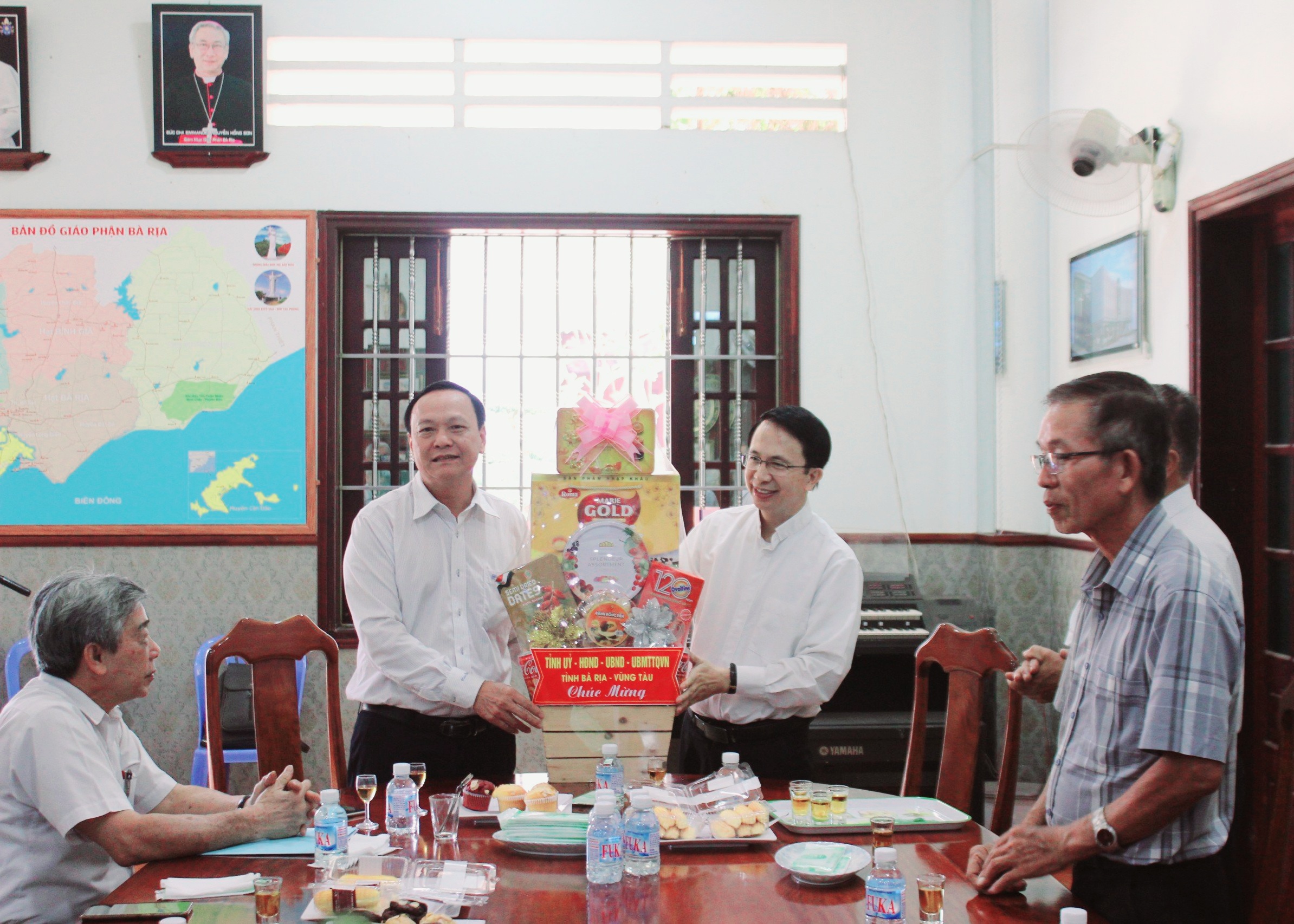 | Ông Đặng Minh Thông, Phó Chủ tịch UBND tỉnh thăm, chúc mừng Linh mục Nguyễn Văn Lượng, Chủ tịch Ủy ban Đoàn kết Công giáo Việt Nam tỉnh Bà Rịa - Vũng Tàu. |