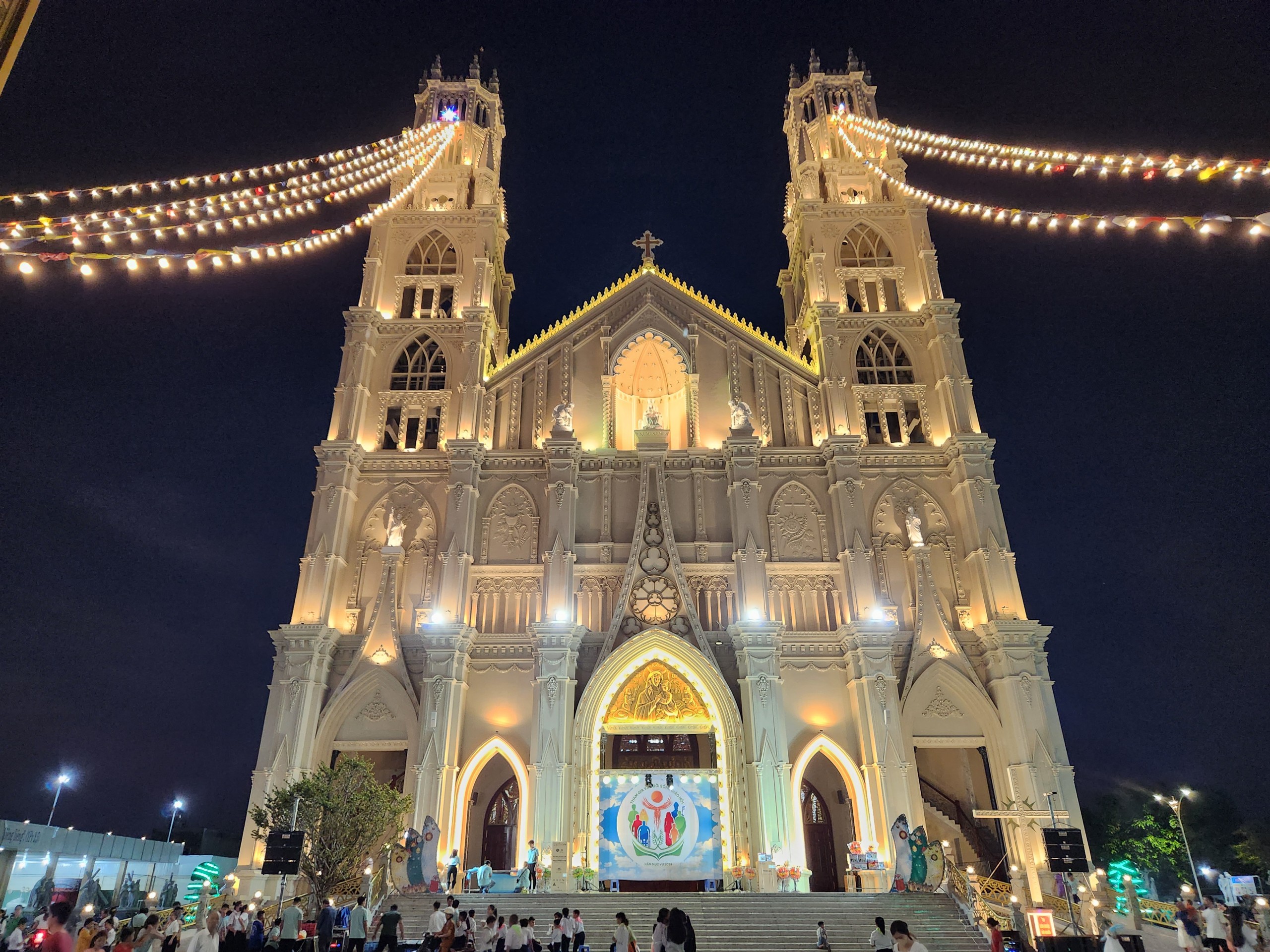 | Giáo xứ Phước Hưng, huyện Long Điền lung linh ánh đèn về đêm. |
