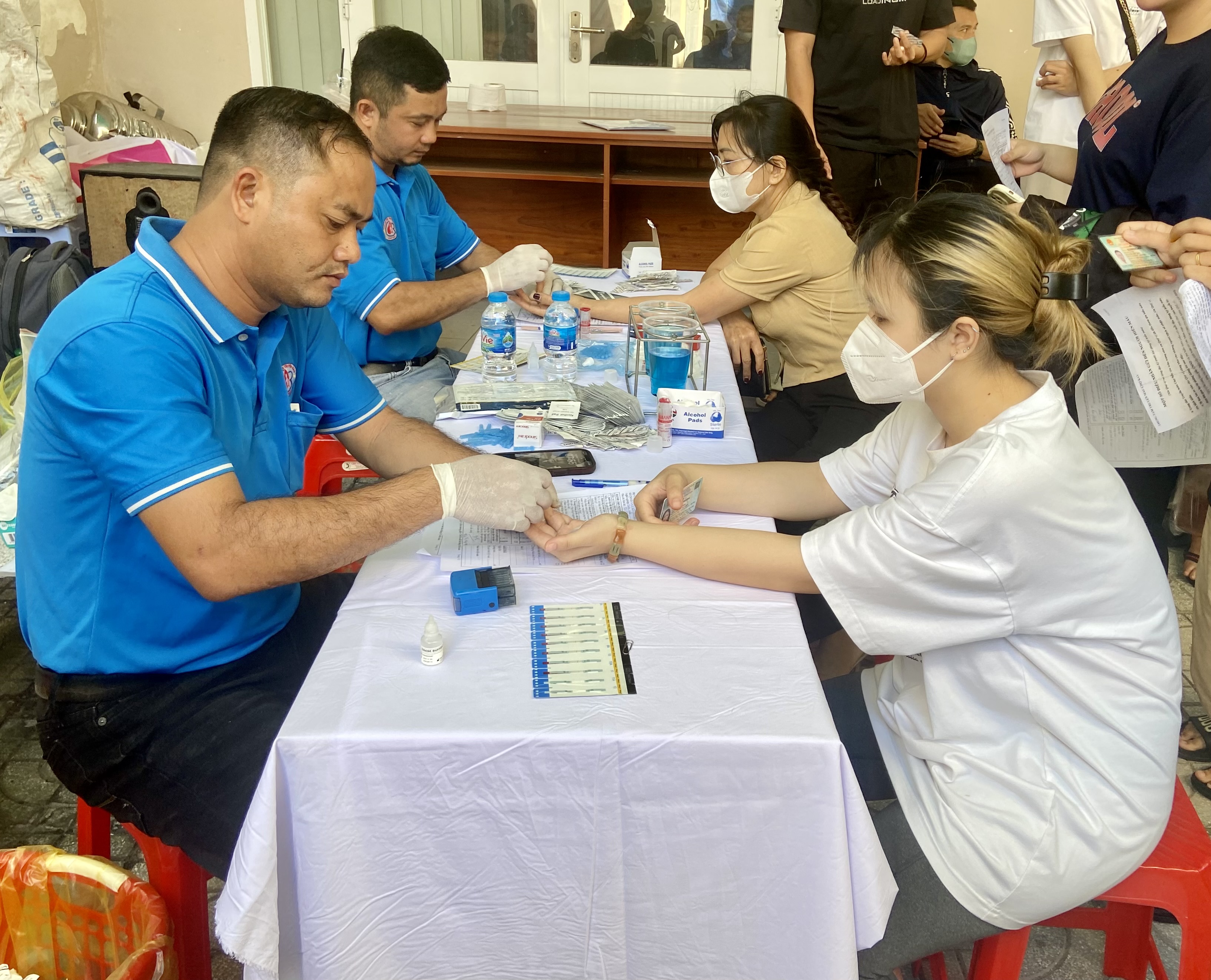 | Người dân được xét nghiệm máu trước khi hiến. |