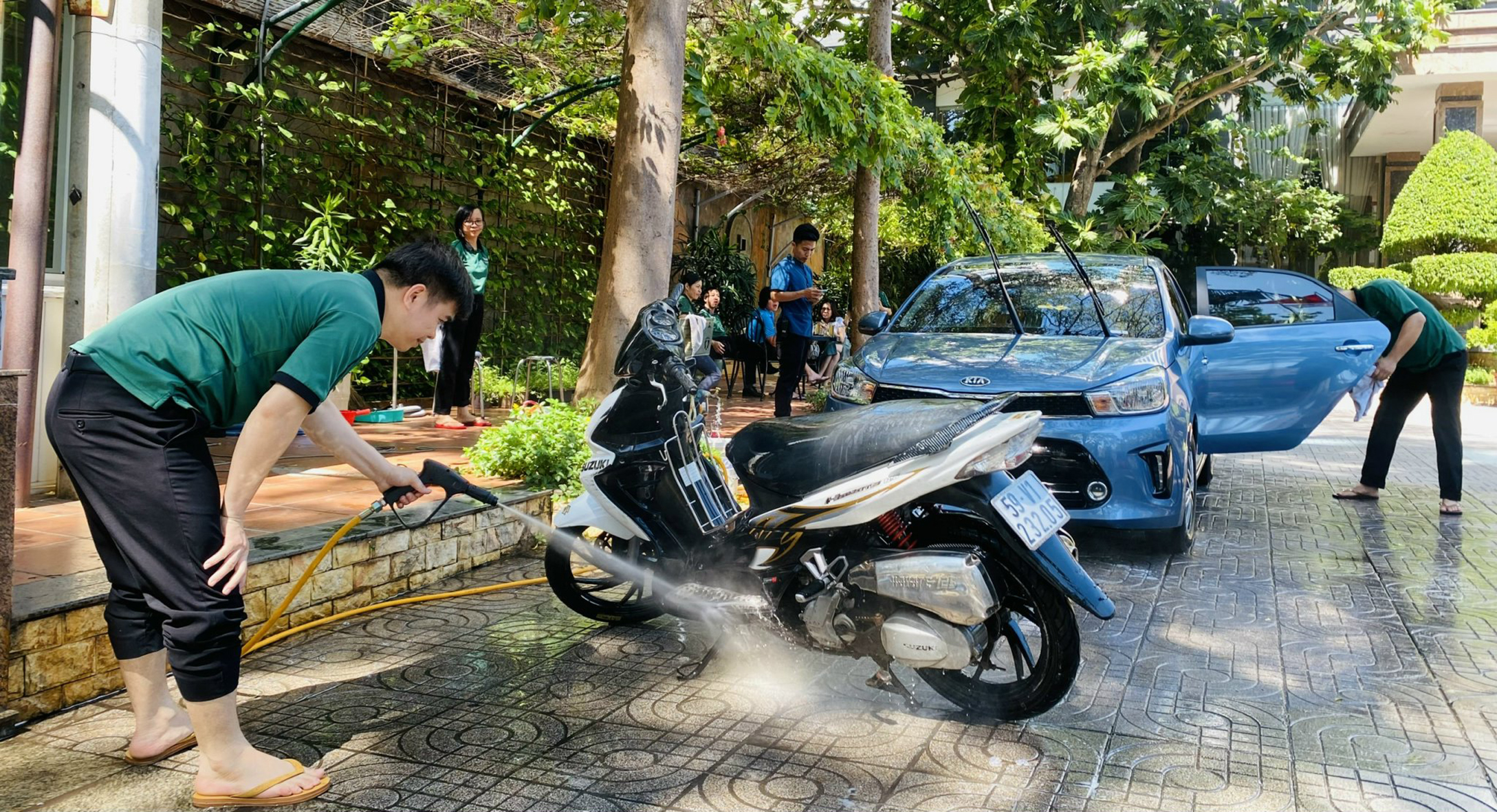 | Nhân viên Khách sạn Mường Thanh Holiday Vũng Tàu rửa xe gây quỹ thực hiện các hoạt động thiện nguyện dịp Tết 2024 |