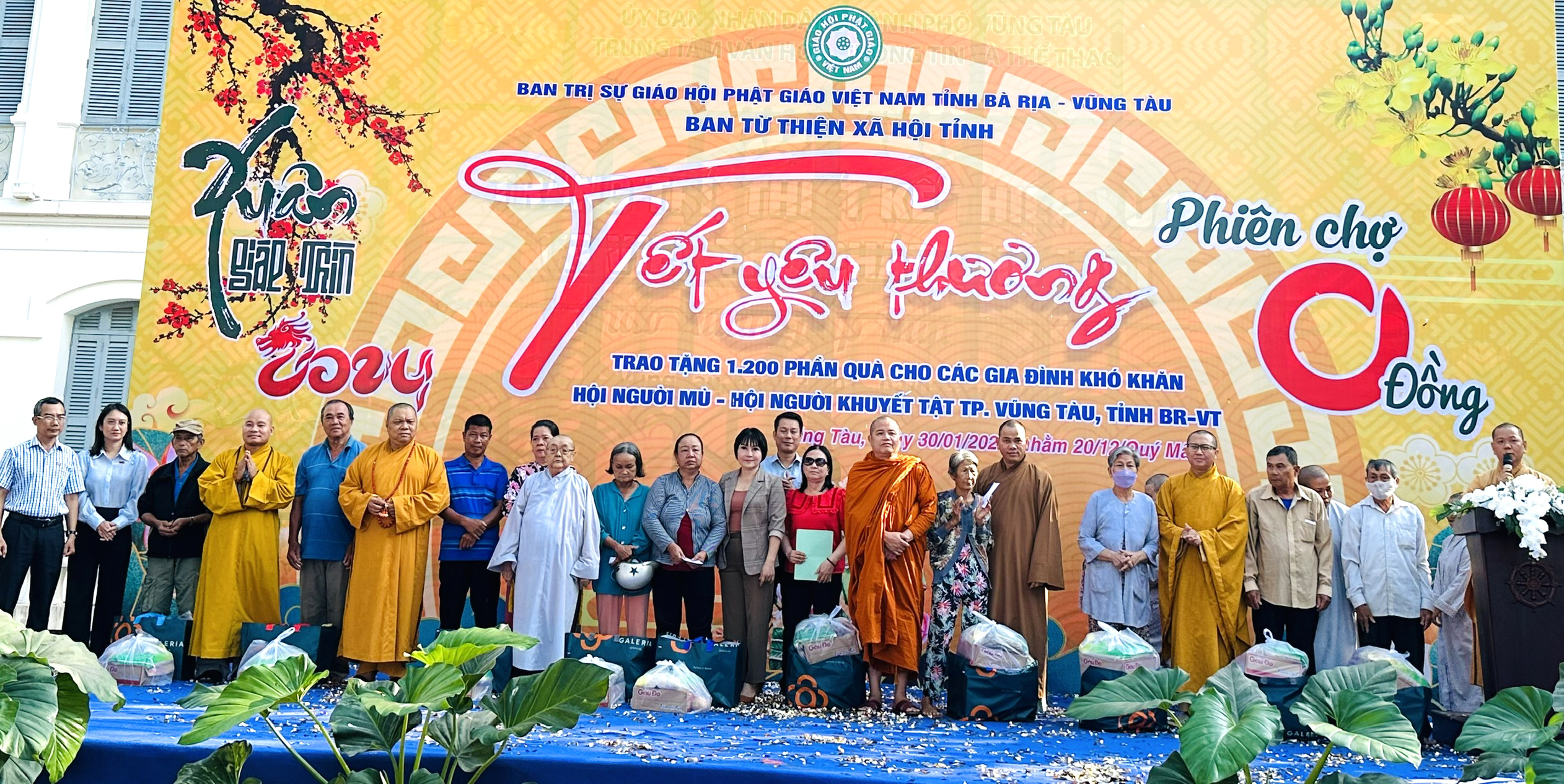 Sáng 30/1, Ban Từ thiện Xã hội, Giáo hội Phật giáo Việt Nam tỉnh tổ chức chương trình Phiên chợ 0 đồng với chủ đề “Tết yêu thương” tại Nhà Truyền thống Cách mạng Vũng Tàu (số 1, Bacu).