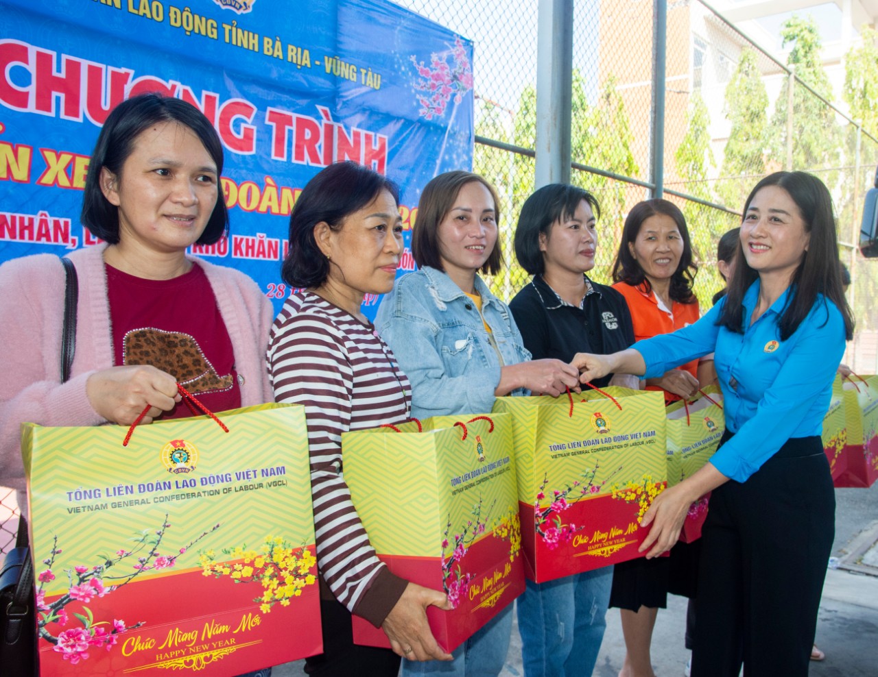 Tại chương trình “Chuyến xe Công đoàn-Xuân 2024”, Tổng LĐLĐ Việt Nam gửi tặng 121 phần quà Tết, mỗi phần quà trị giá 300 ngàn đồng cho đoàn viên, NLĐ.