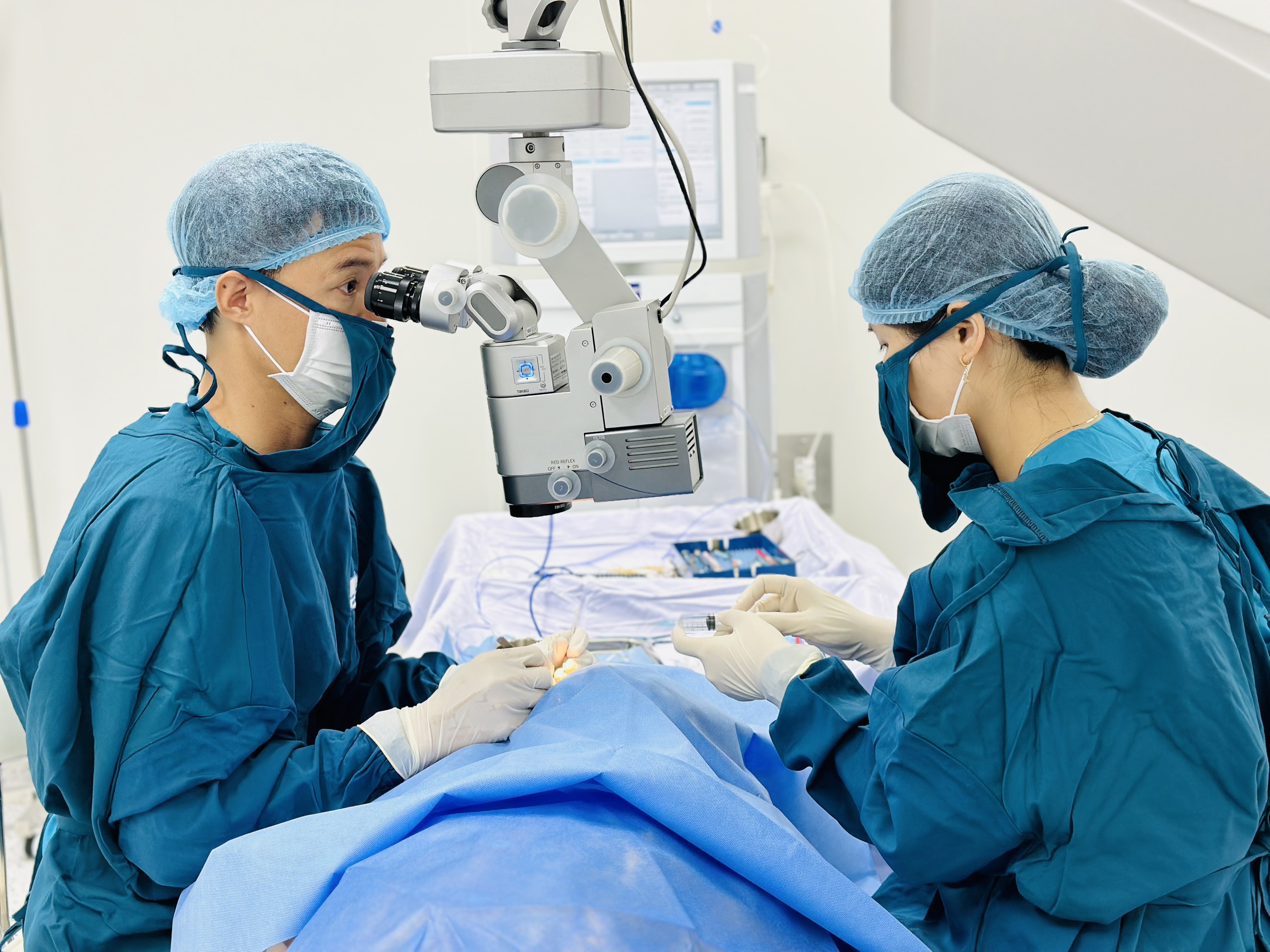 | Bác sĩ của Bệnh viện Mắt miền Đông phẫu thuật cho bệnh nhân bị đục thủy tinh thể. |