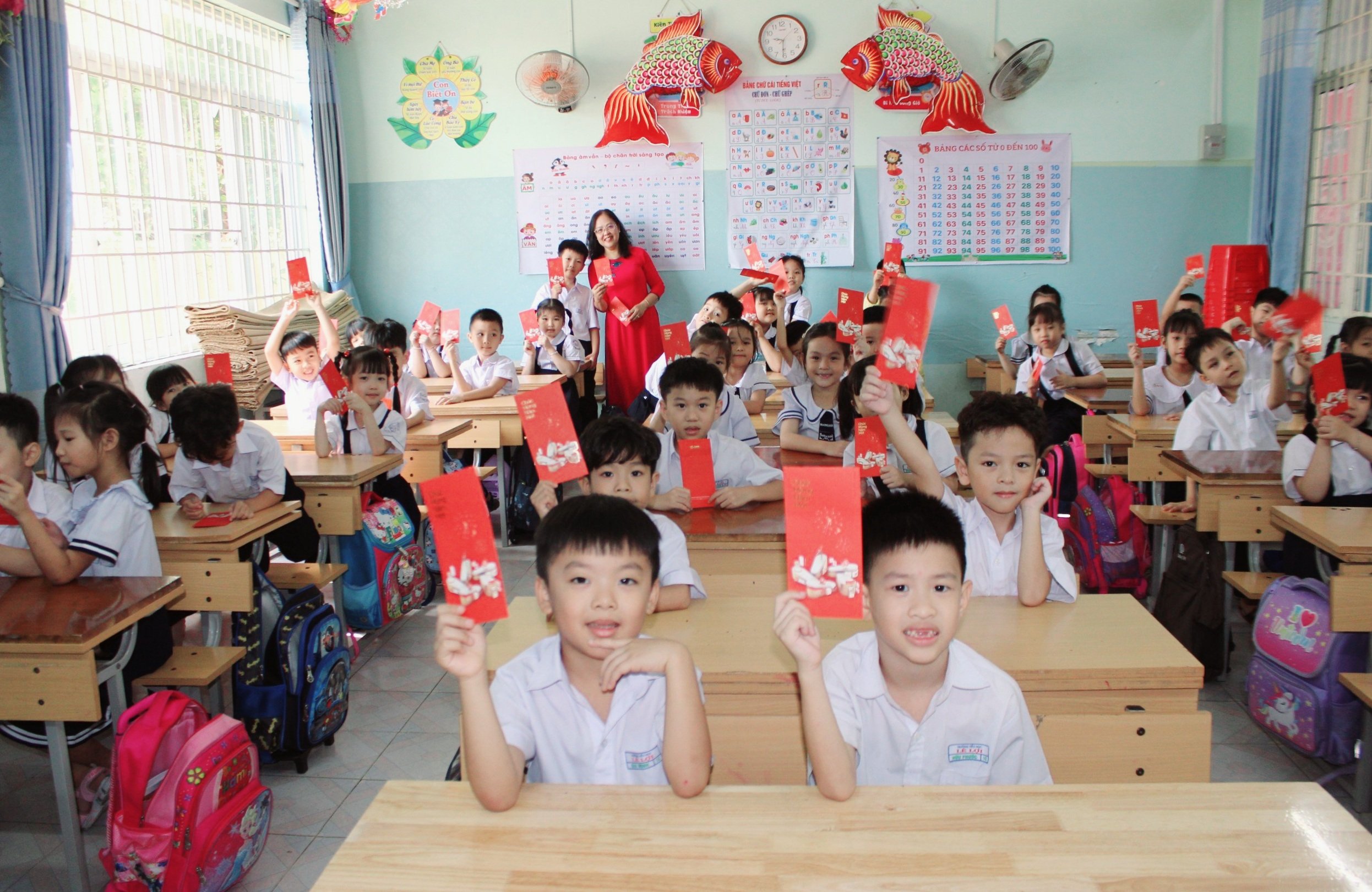 Tại Trường TH Lê Lợi (TP.Vũng Tàu), 7h sáng, hơn 900 HS đã tập trung dưới sân trường. Trong buổi học đầu tiên của năm học mới, nhà trường đã tổ chức nhiều hoạt động vui tươi, sôi nổi như chúc Tết, lì xì đầu năm, trò chơi, khen thưởng cho các em HS có thành tích xuất sắc… để khởi động một năm mới đầy hứng khởi.