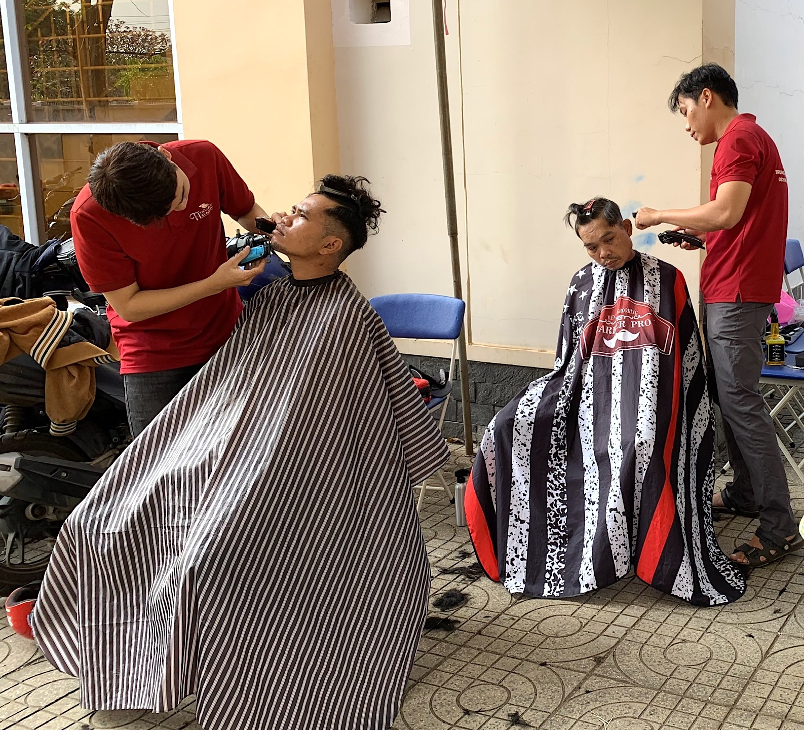 | Thành viên Trần Hậu Barber shop cắt tóc miễn phí cho người dân. |