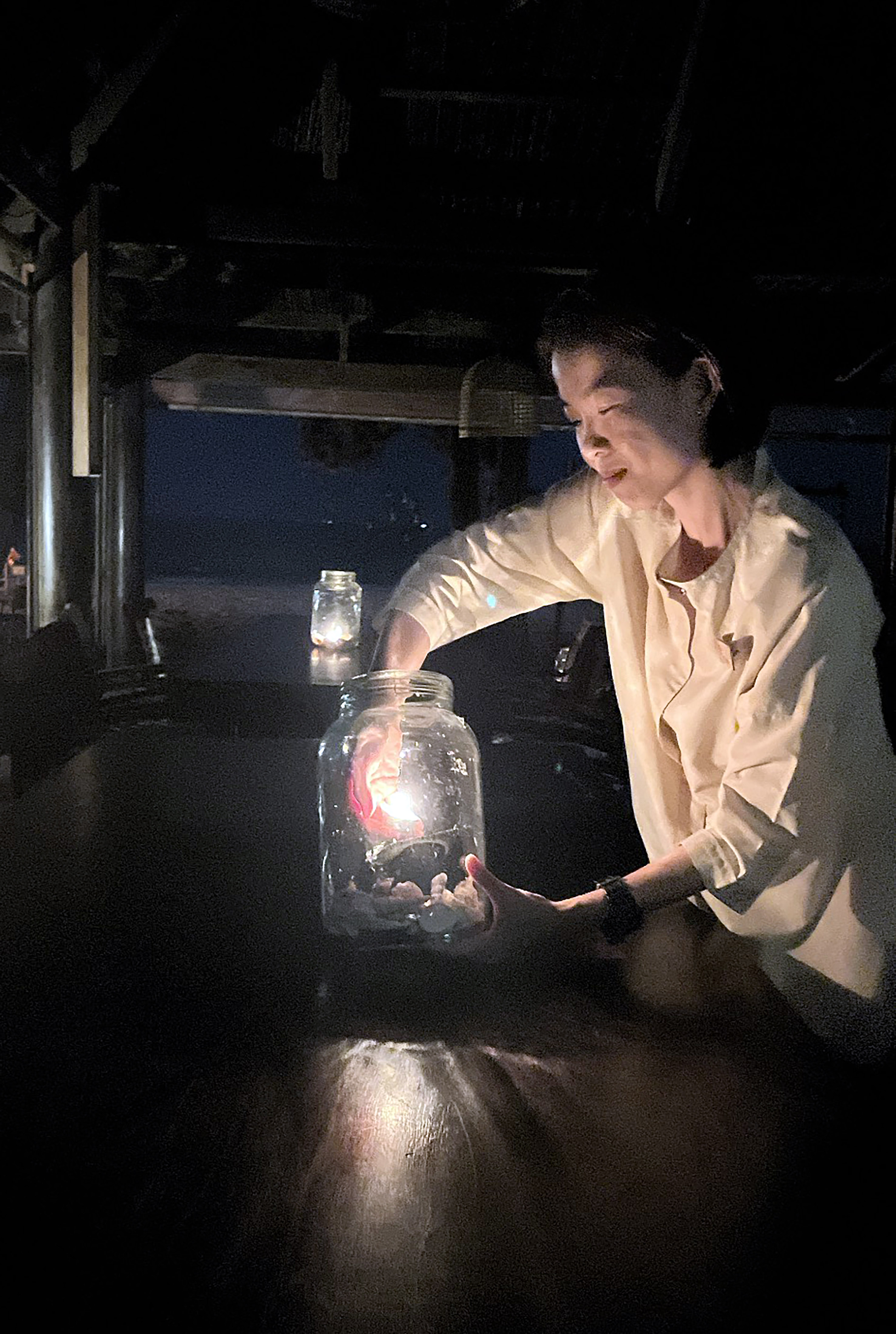 | Nhân viên Hồ Tràm Beach Boutique Resort & spa tắt đèn điện, sử dụng nguồn sáng thân thiên môi trường hưởng ứng Giờ Trái đất năm 2024. Ảnh: Mỹ Lương. |