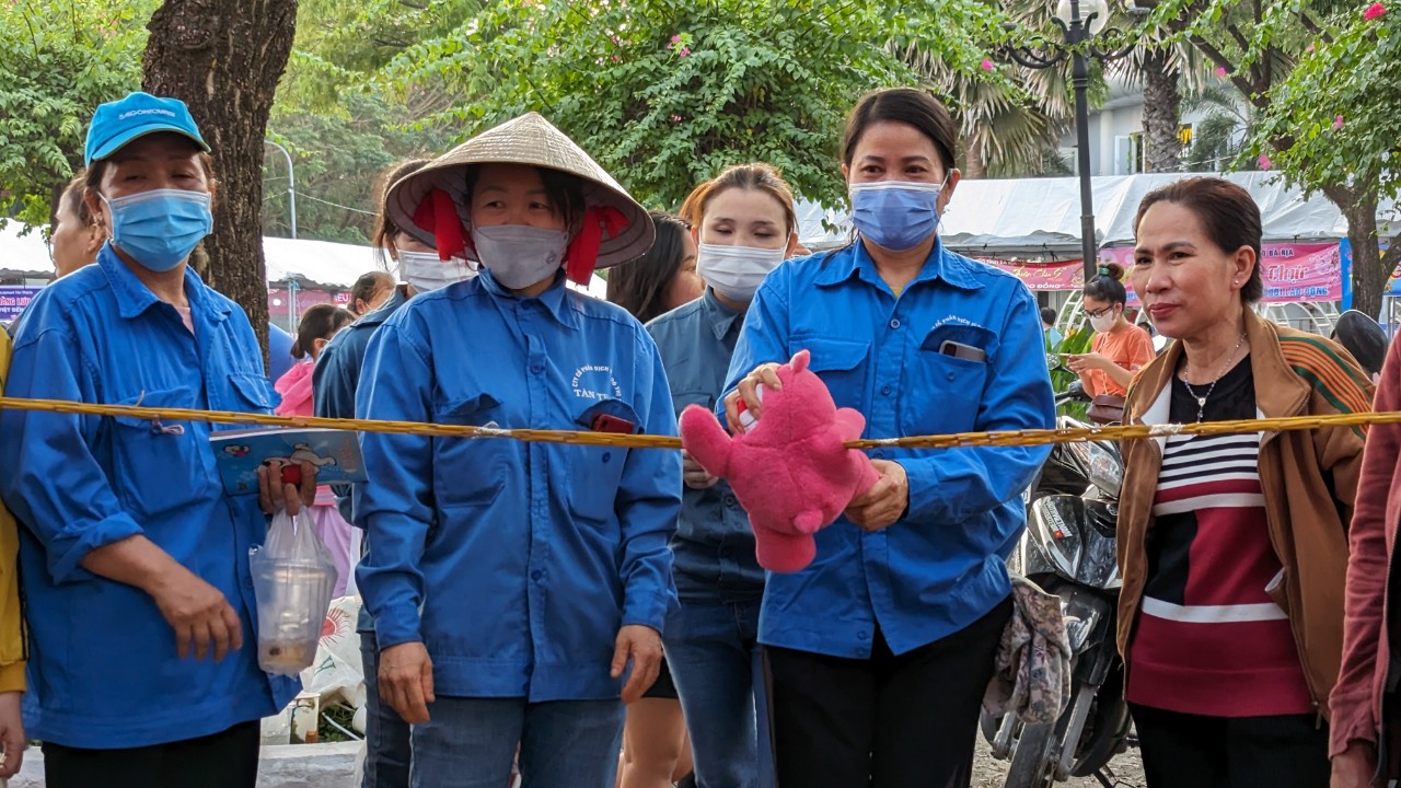 | Việc điều chỉnh tuổi nghỉ hưu cần sát với thực tế sản xuất, điều kiện làm việc và sức khỏe của NLĐ. Trong ảnh: Công nhân KCN Phú Mỹ, TX.Phú Mỹ tham gia các gian hàng trò chơi do LĐLĐ tỉnh tổ chức. |