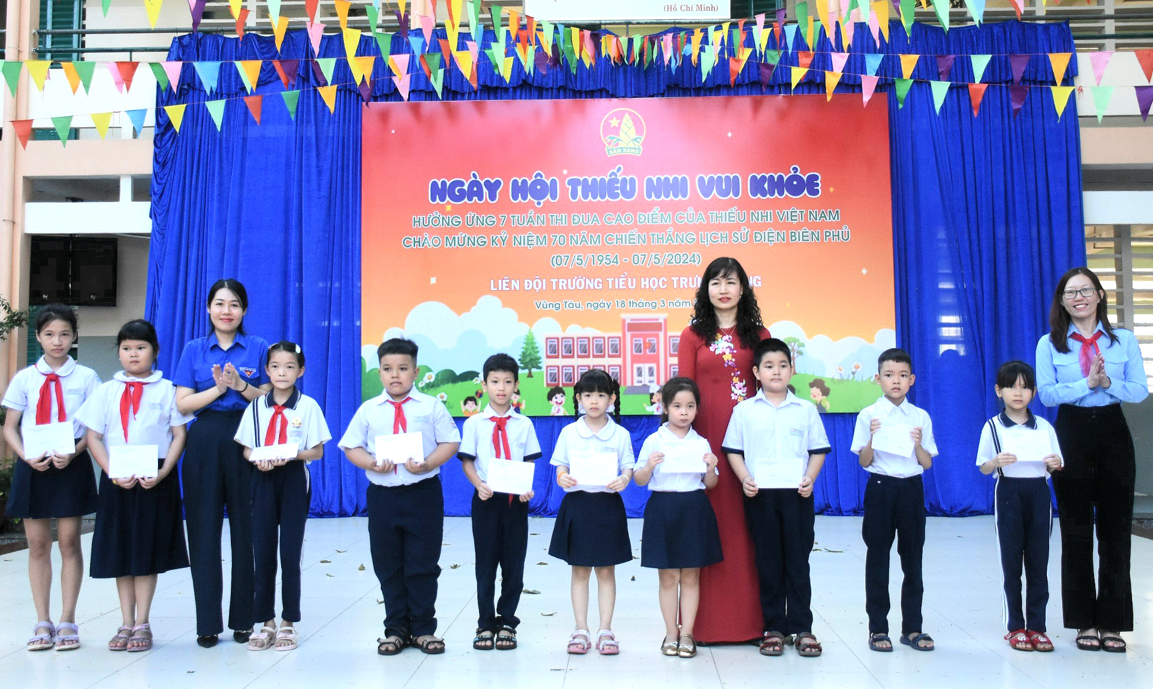 Hưởng ứng 7 tuần thi đua cao điểm của thiếu nhi Việt Nam chào mừng kỷ niệm 70 năm Chiến thắng lịch sử Điện Biên Phủ (1954-2024), ngày 18/3, Trường TH Trưng Vương (TP.Vũng Tàu) tổ chức Ngày Hội Thiếu nhi vui khỏe. Đây là chương trình điểm trong khối tiểu học được Hội đồng Đội TP.Vũng Tàu chỉ đạo thực hiện.