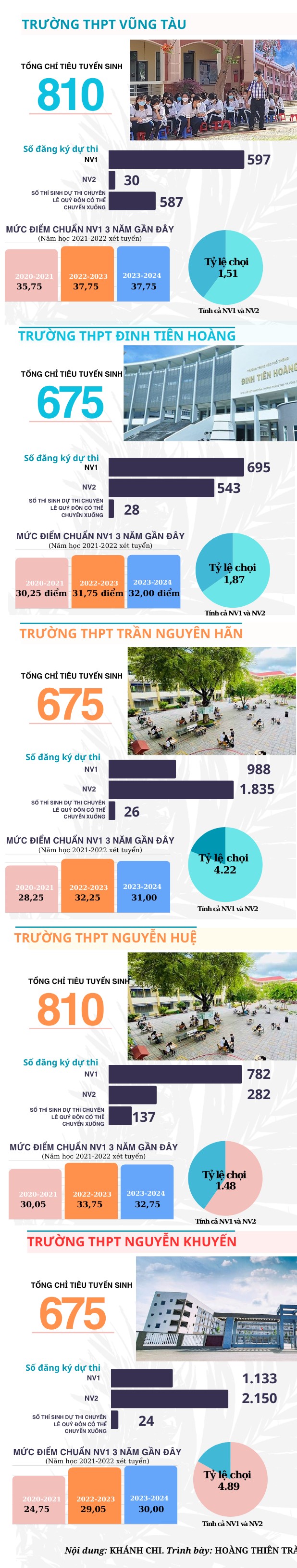 Infographics: Tỷ lệ chọi vào lớp 10 các trường THPT ở Vũng Tàu