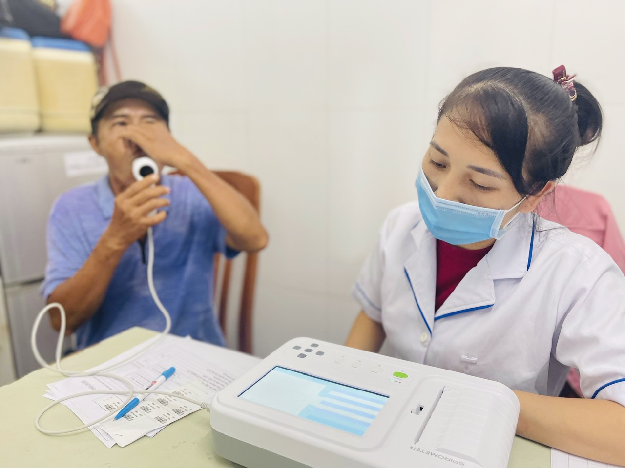 | Người dân phường Thắng Nhì được kiểm tra chức năng hô hấp. |