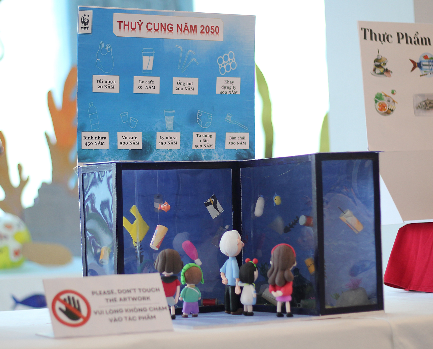 Mỗi mô hình nổi bật dòng chủ đề như: Ai mới thực sự là kẻ thống trị đại dương; san hô có mùi nhựa; thứ gì xả xuống biển, biển sẽ trả lại bạn thứ đó; đại dương xưa trong xanh và bây giờ toàn rác nhựa; hồ sơ bệnh án của trái đất; thủy cung năm 2025 chỉ toàn rác thải; tàu X đâm phải tảng băng nhựa khổng lồ; tin hot tìm thấy bình nhựa niên đại trên 500 năm…